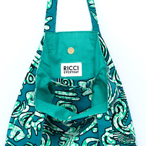 1. RICCI EVERYDAYの製品は、アフリカンワックスプリントの布を使用しています。製品製作時に布に水を通し、色止め加工を施す等、極力、水による色落ちを防ぐようにしております。但し極度な水濡れや摩擦等により色落ちする可能性がありますので、雨の日の使用はお控えいただき、十分にご注意下さい。