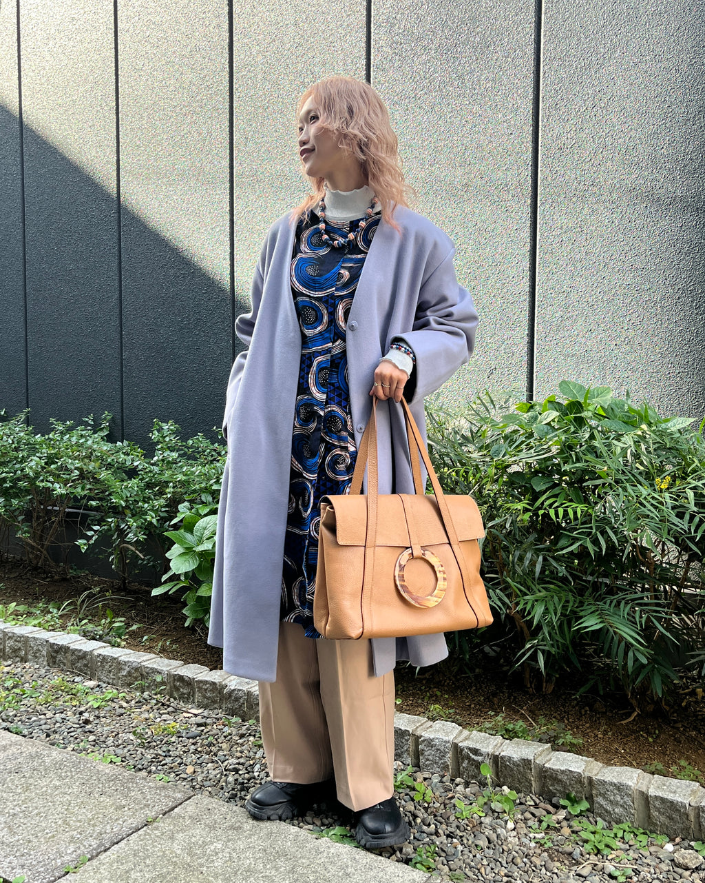 バッグの内側は、鮮やかなアフリカンプリントをふんだんに使用しました。このデザインには、”サイレント・パッション(隠された情熱)”という想いが込められています。シンプルなレザーの内側に潜む個性豊かなアフリカンプリントで、 “私らしさ”や “内なる情熱” を表現する楽しみを感じていただけたら嬉しいです。