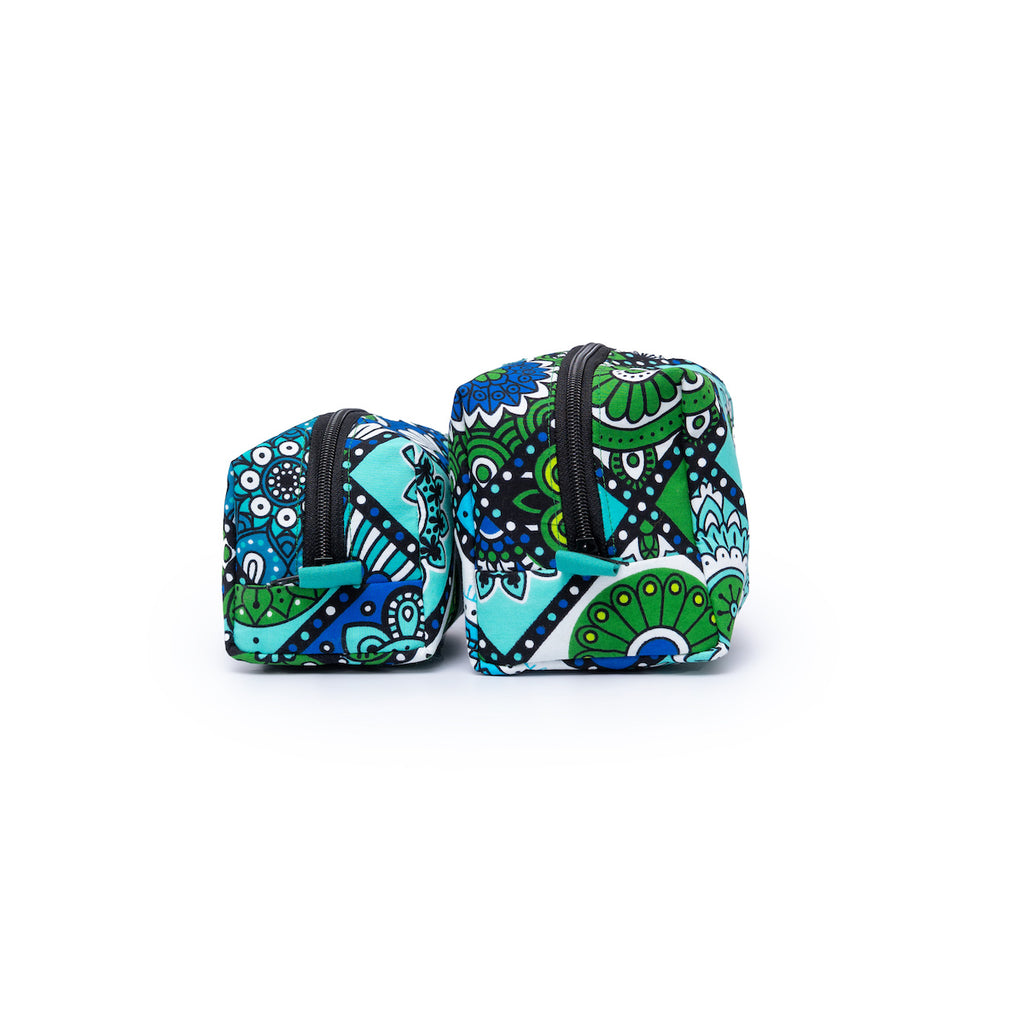アフリカンプリントを使用した、ボックス型のポーチ。