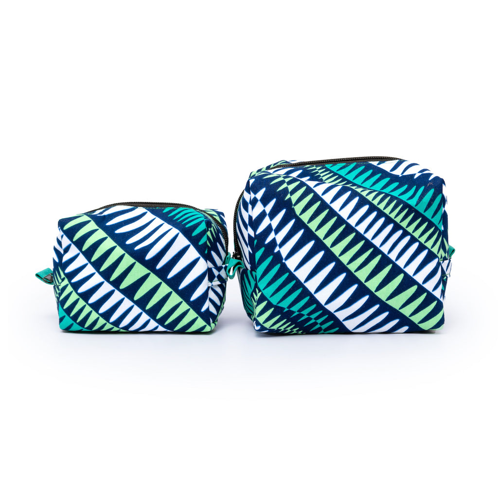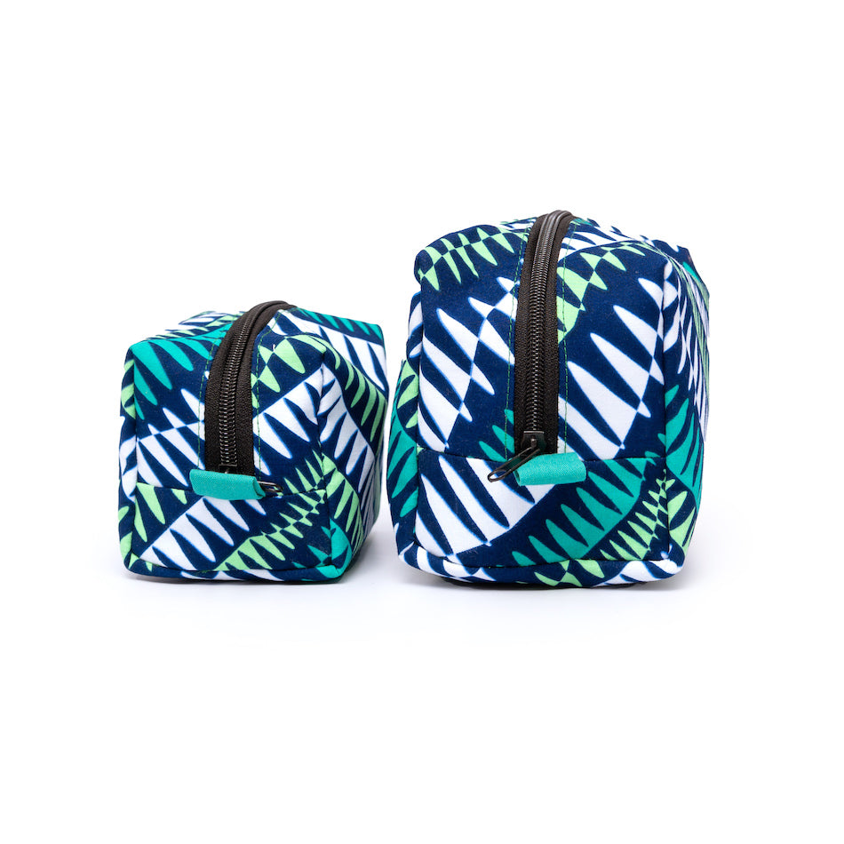 アフリカンプリントを使用した、ボックス型のポーチ。