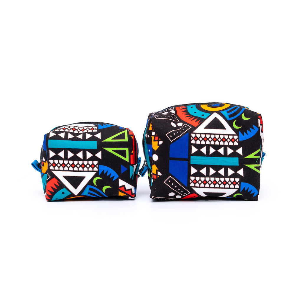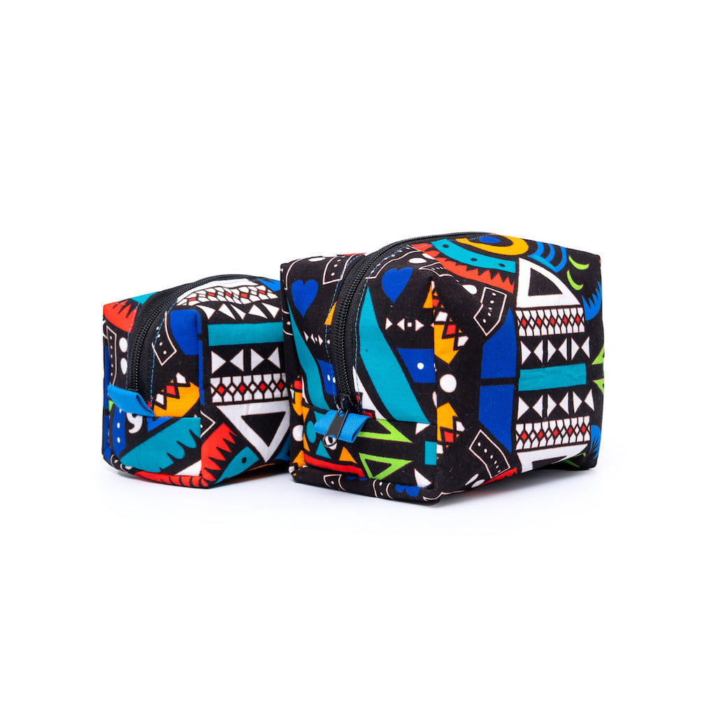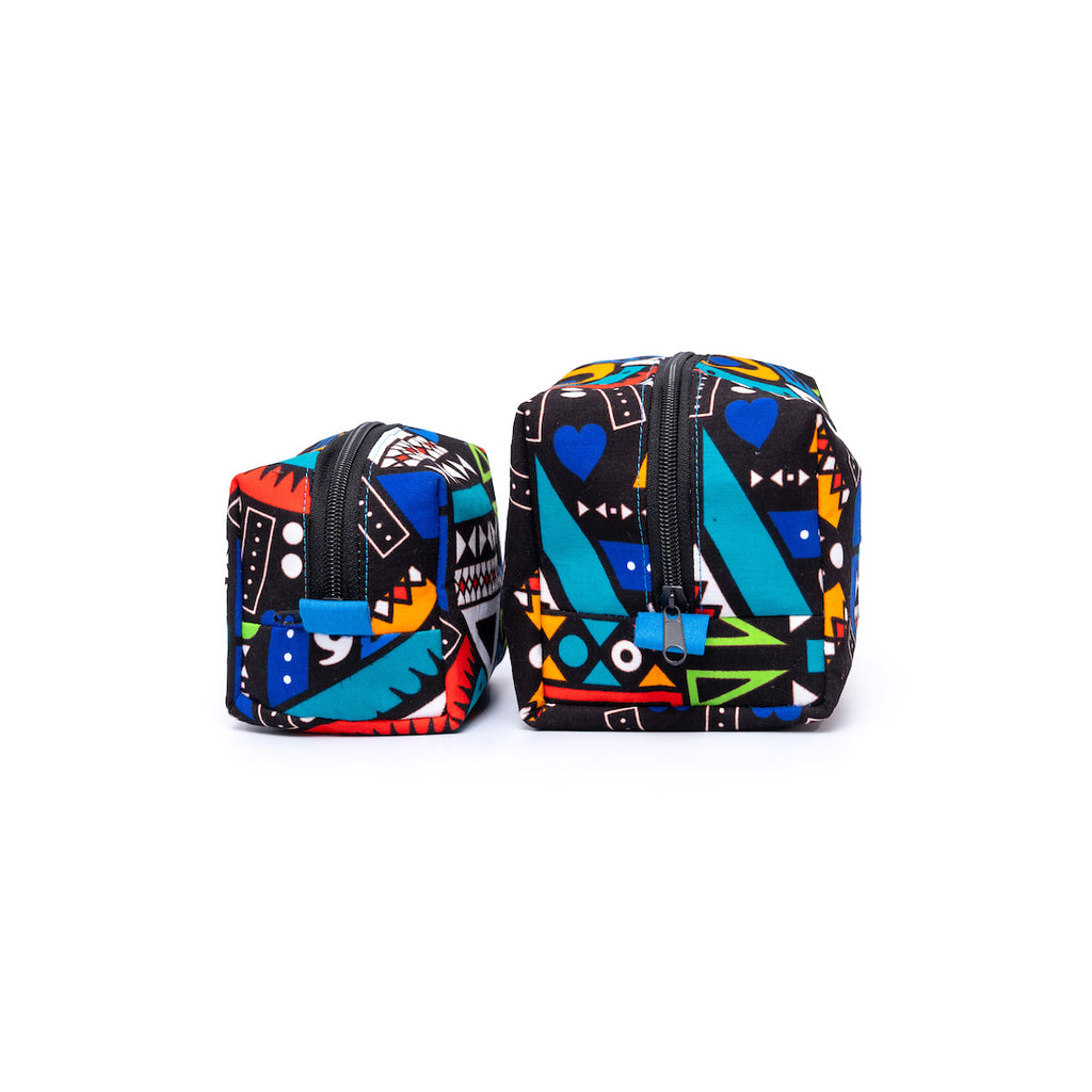 アフリカンプリントを使用した、ボックス型のポーチ。