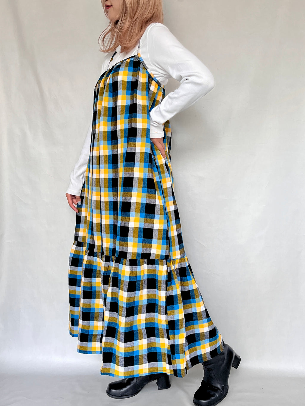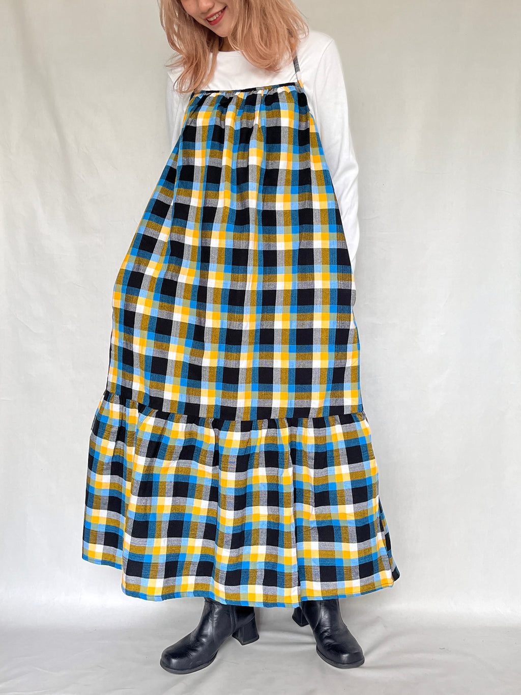 クロスティアードドレス- マサイシュカ - - ブルー&イエロー -
