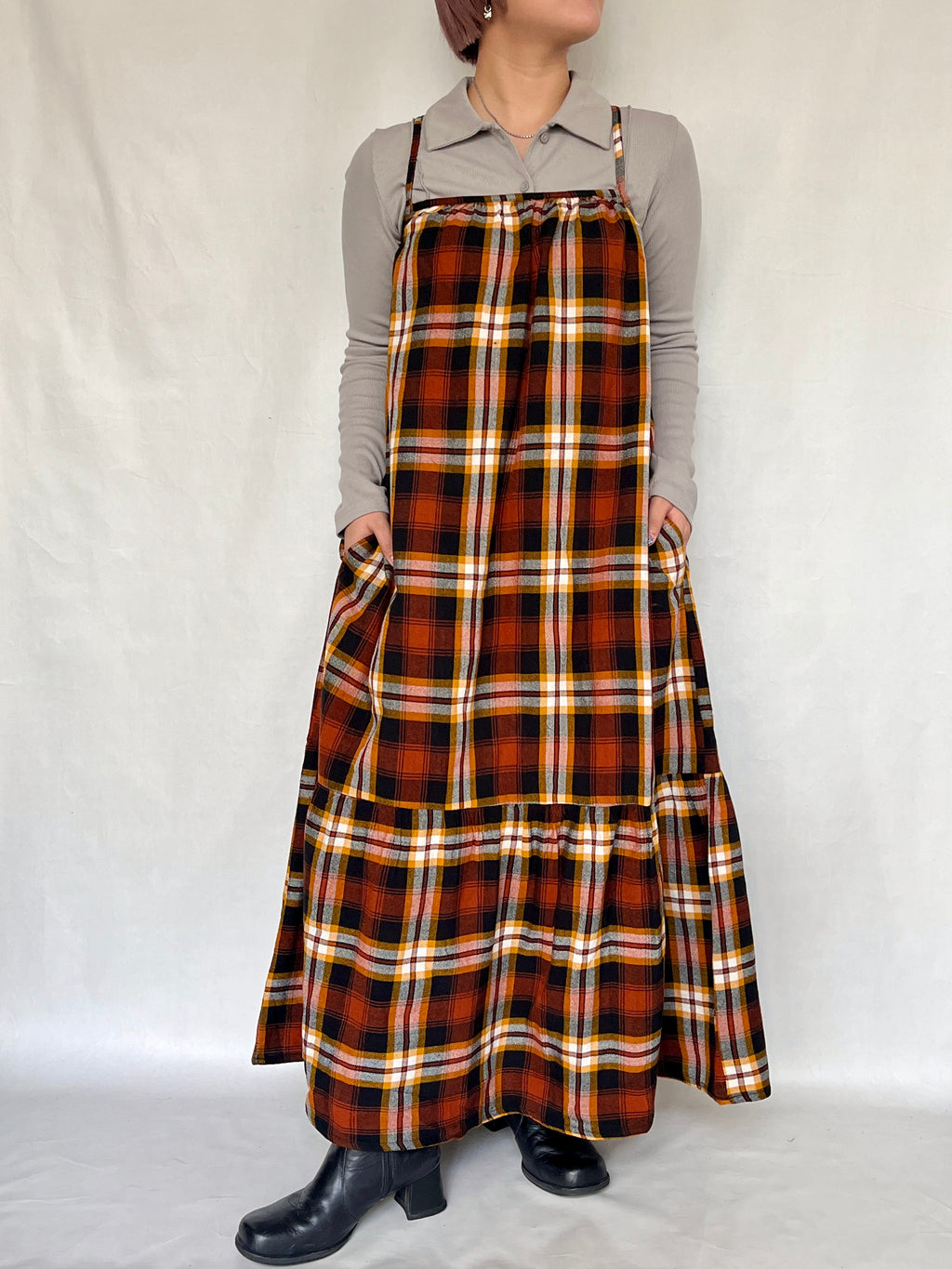 クロスティアードドレス- マサイシュカ - - ブラウン&ブラック -