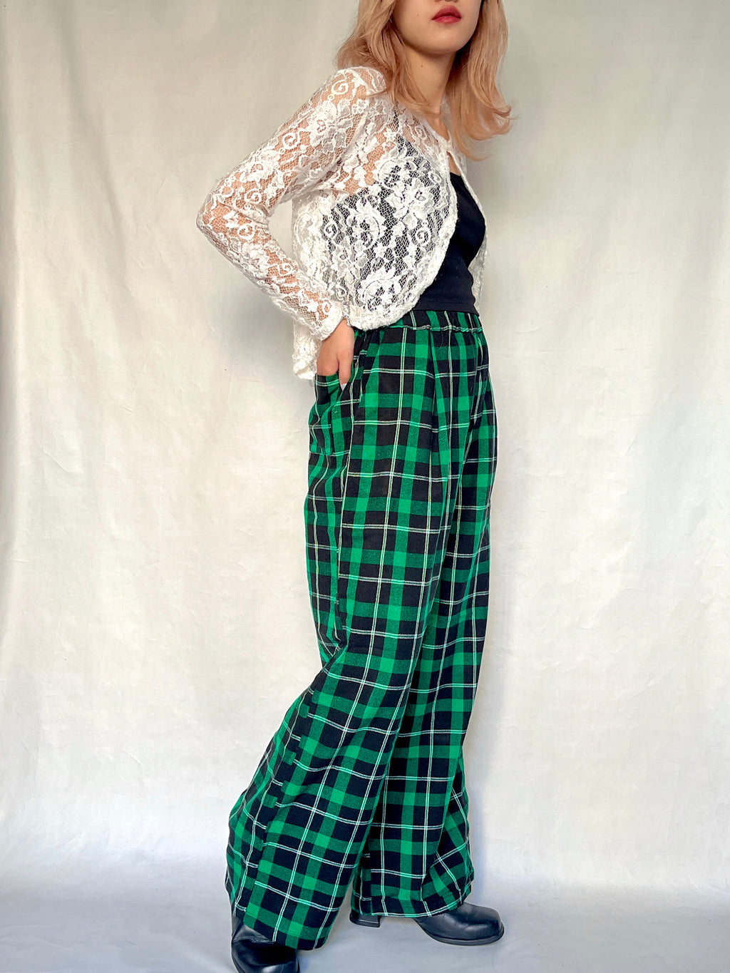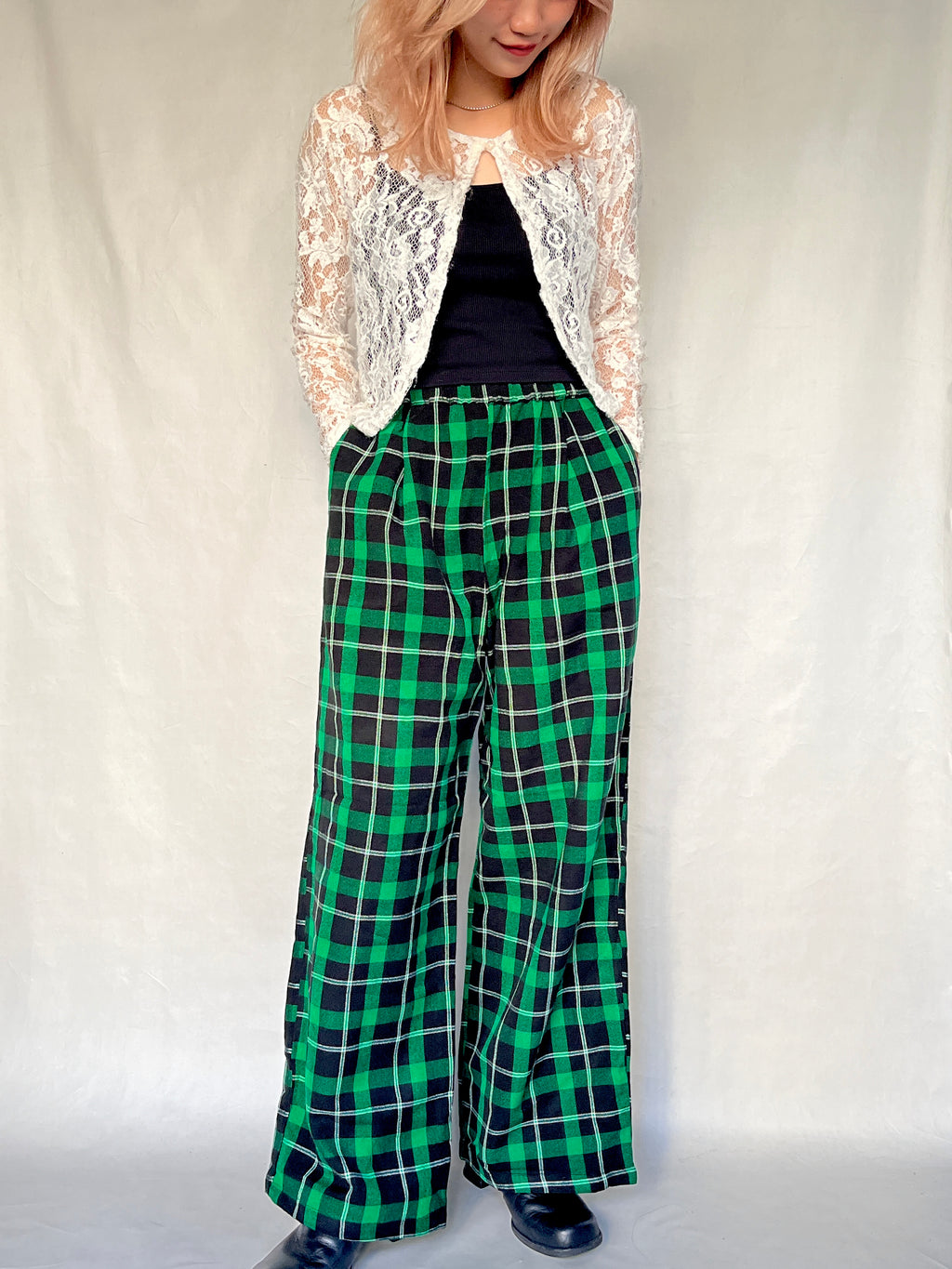 リラックス・ワイド・パンツ- マサイシュカ - - ブラック&グリーン -