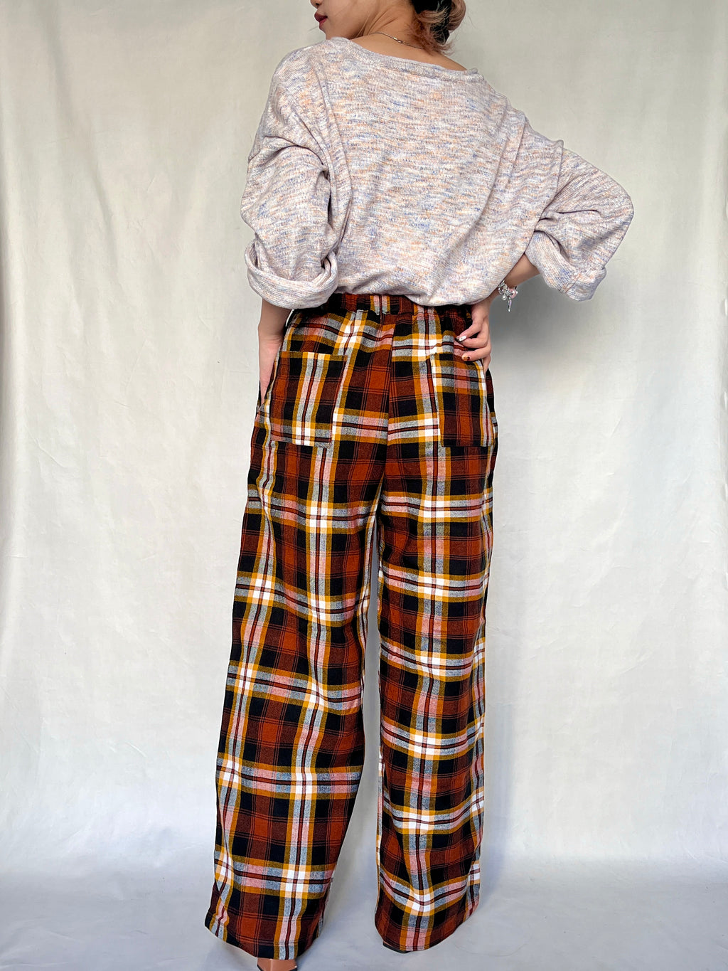 リラックス・ワイド・パンツ- マサイシュカ - - ブラウン&ブラック -