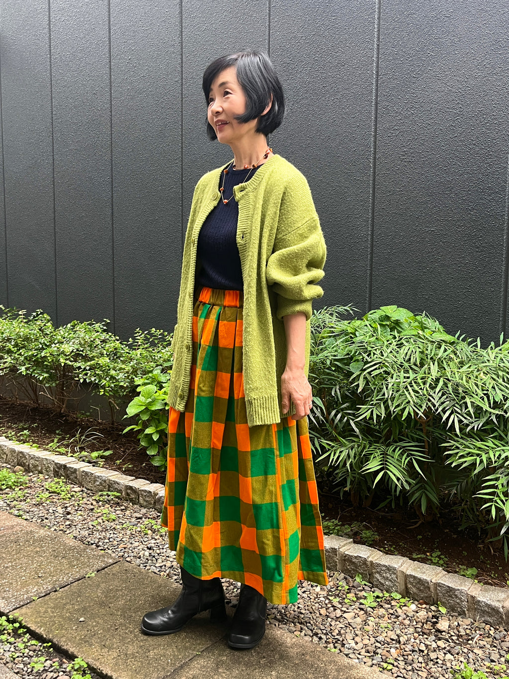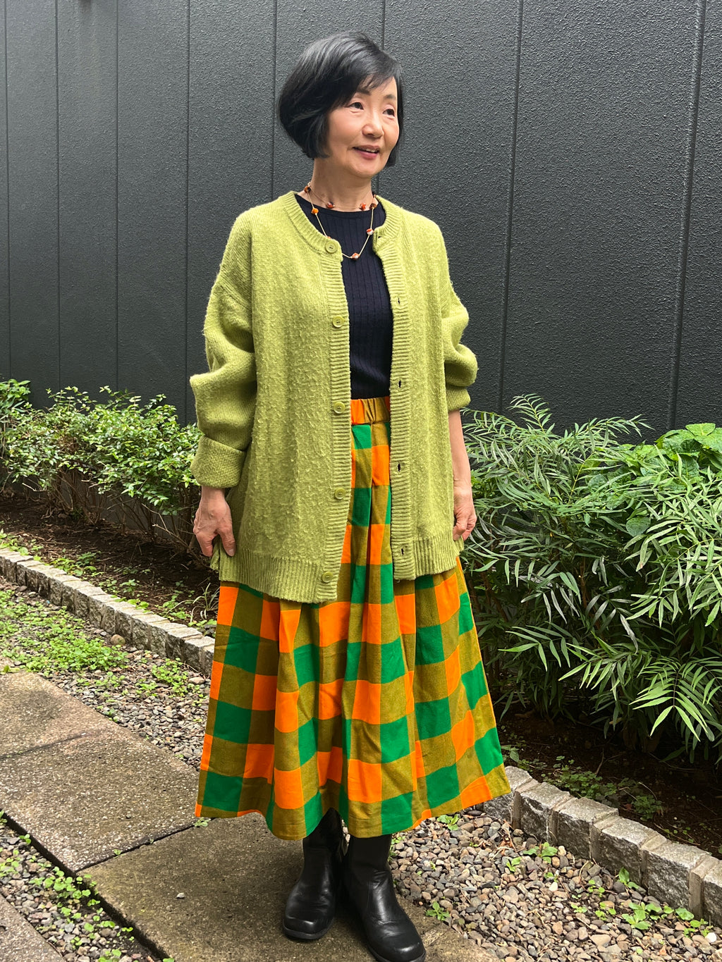 ・前と後ろで丈の長さが異なるところが、このスカートのポイント。足元がスッキリと見え、靴もしっかりアピール!