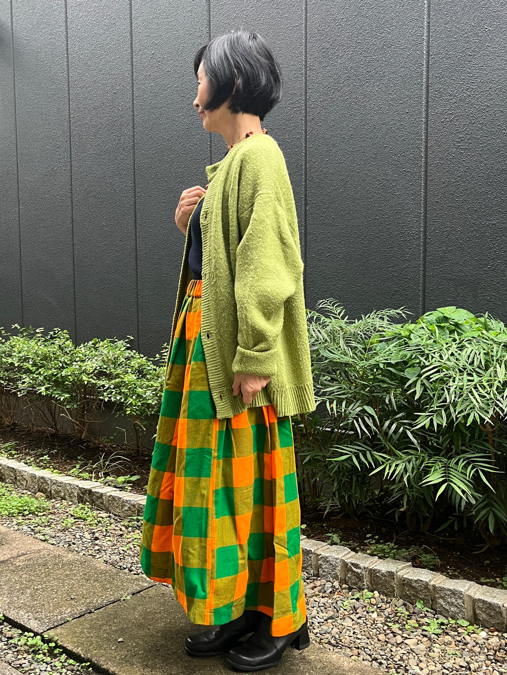 アブダビ・ギャザー・スカート - マサイシュカ ・ グリーン&オレンジ -