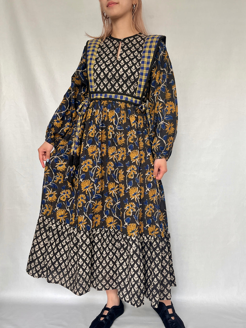 No.19【saruche】キルティングパッチサイドリボンワンピース - ブラック -