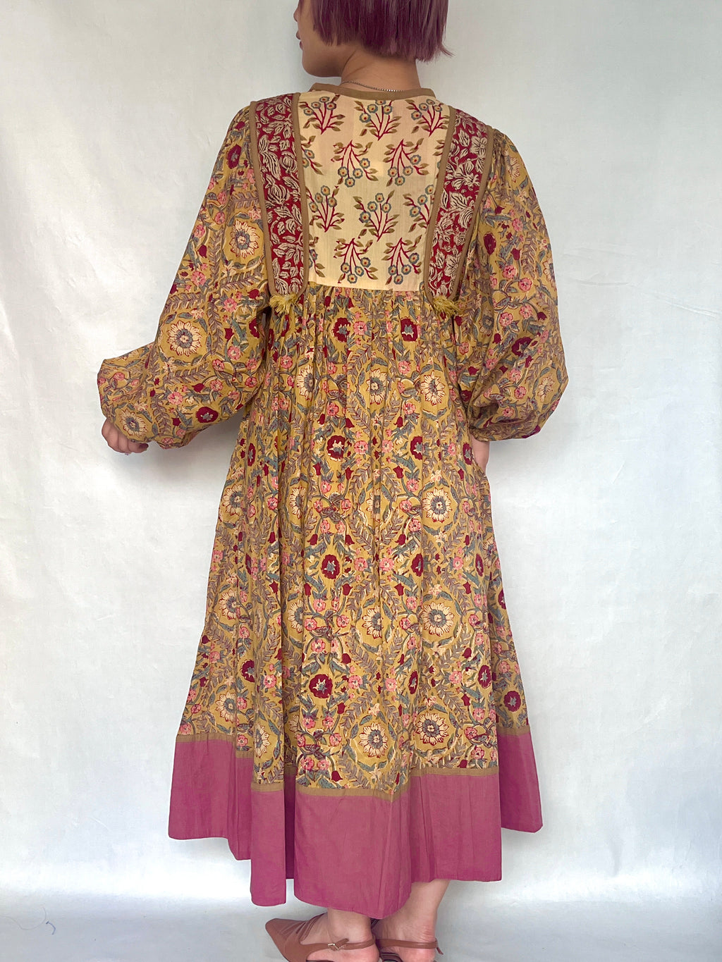 ・草木染めのブロックプリントは色落ちがしやすいため、ドライクリーニングを推奨致します。