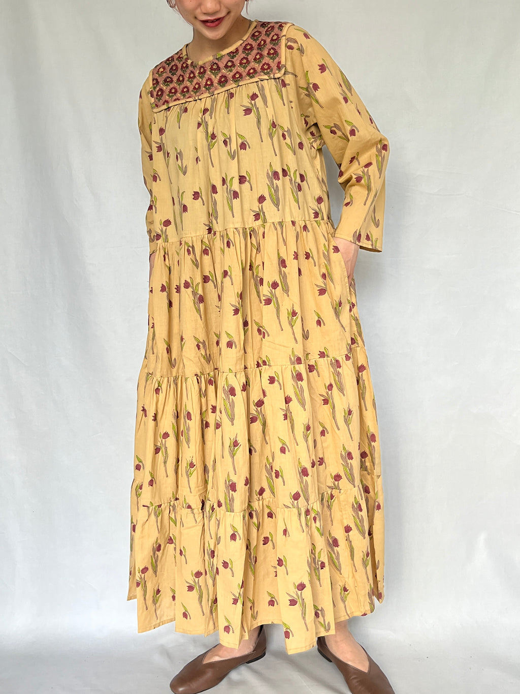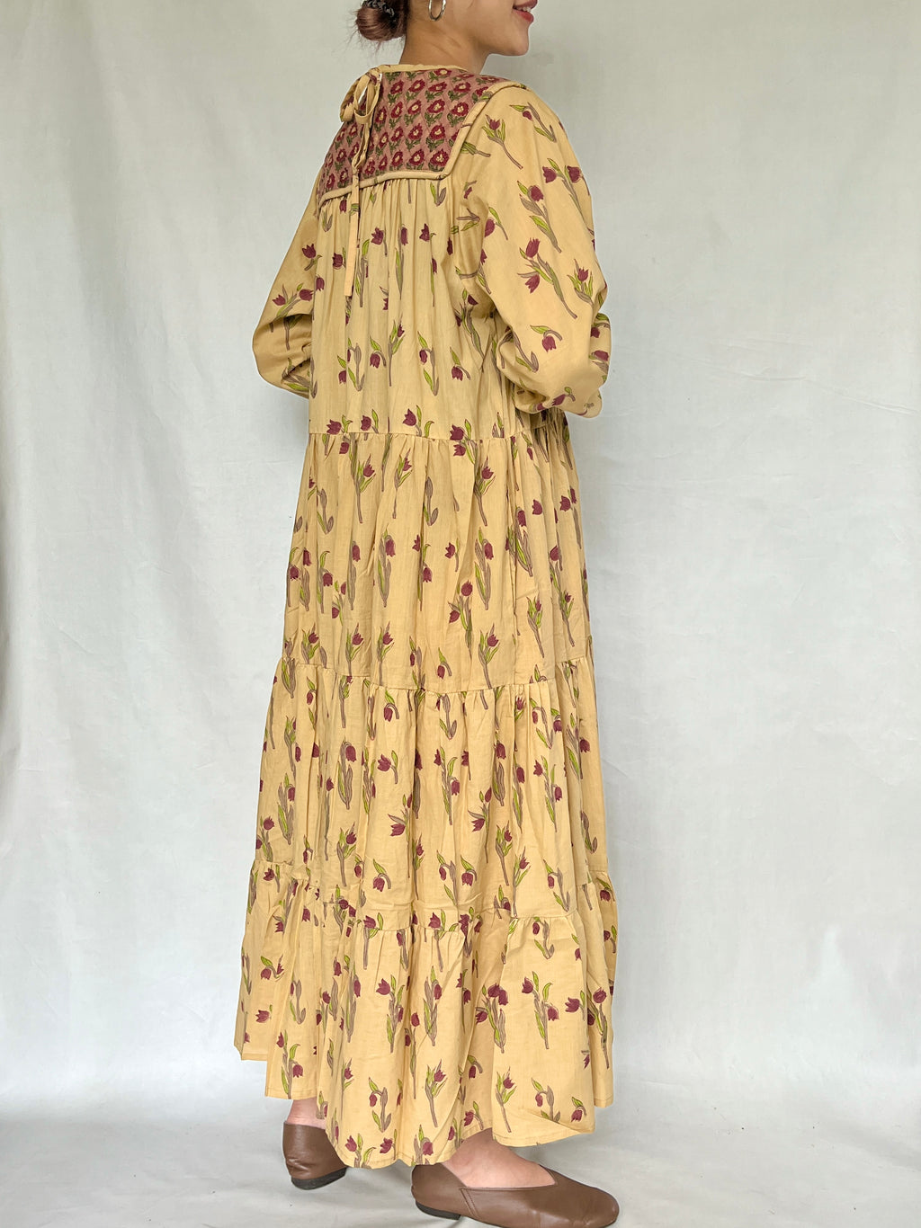 小さめのヨークが襟まわりについていて、ワンピースはティアードになっています。