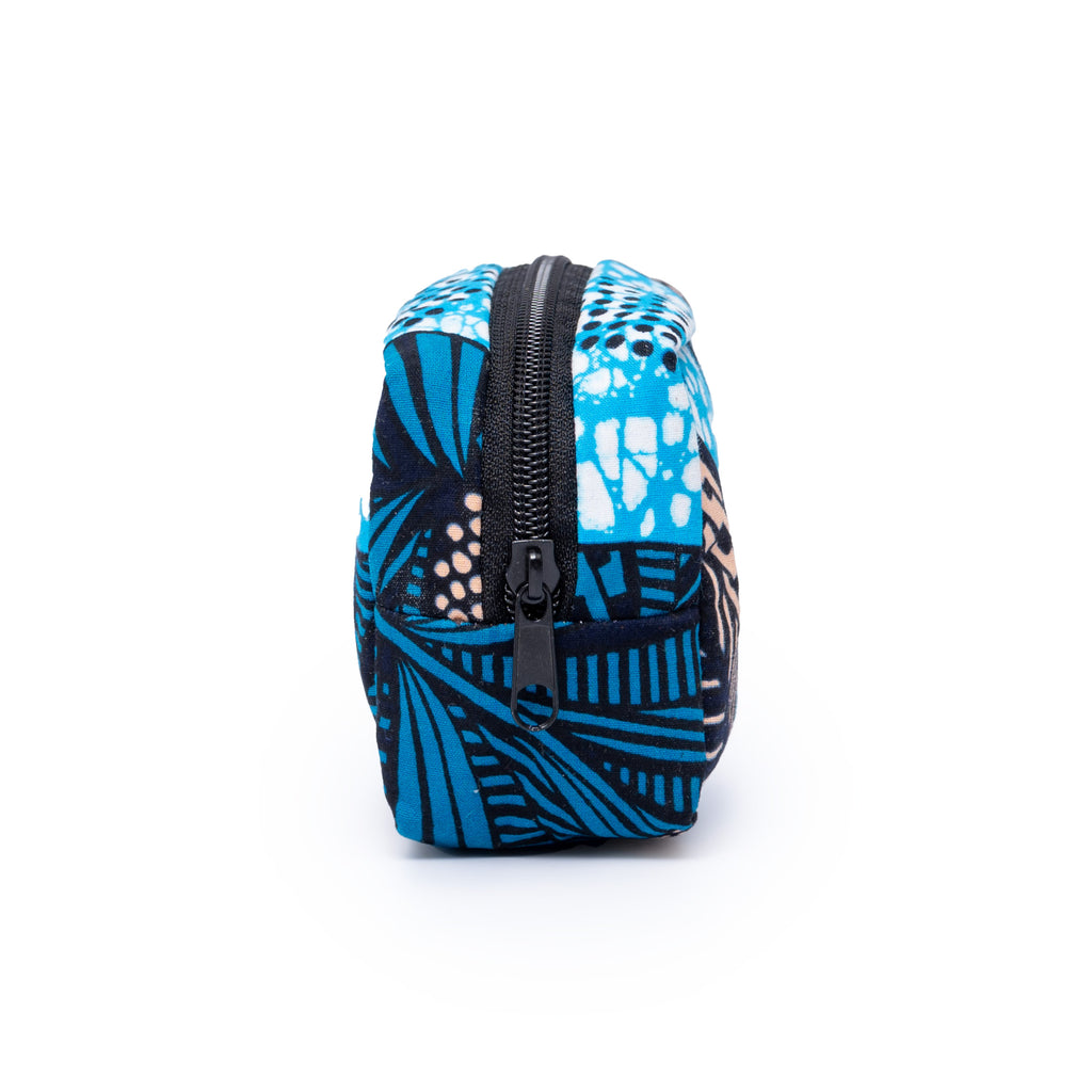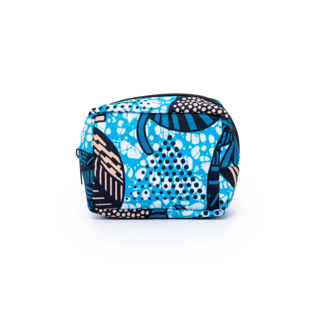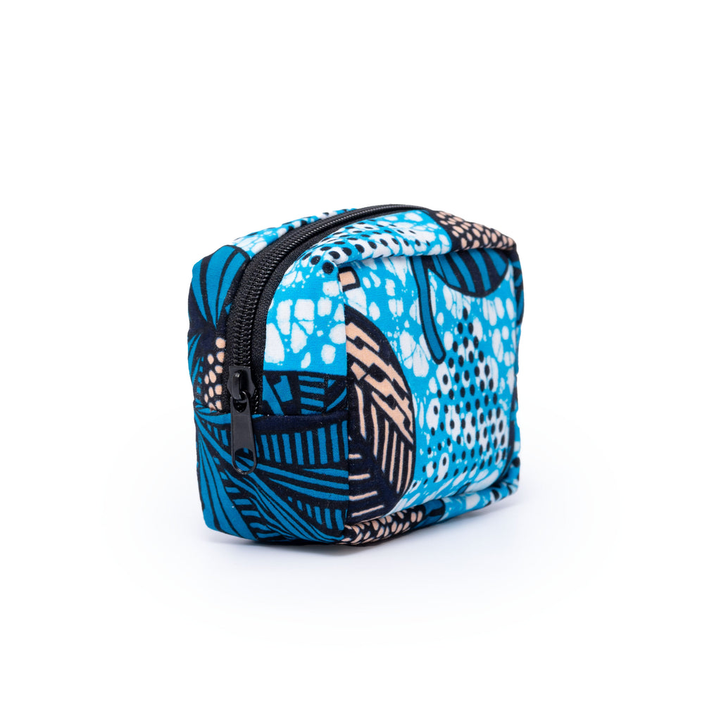 アフリカンプリントを使用した、キューブ型ポーチ。
