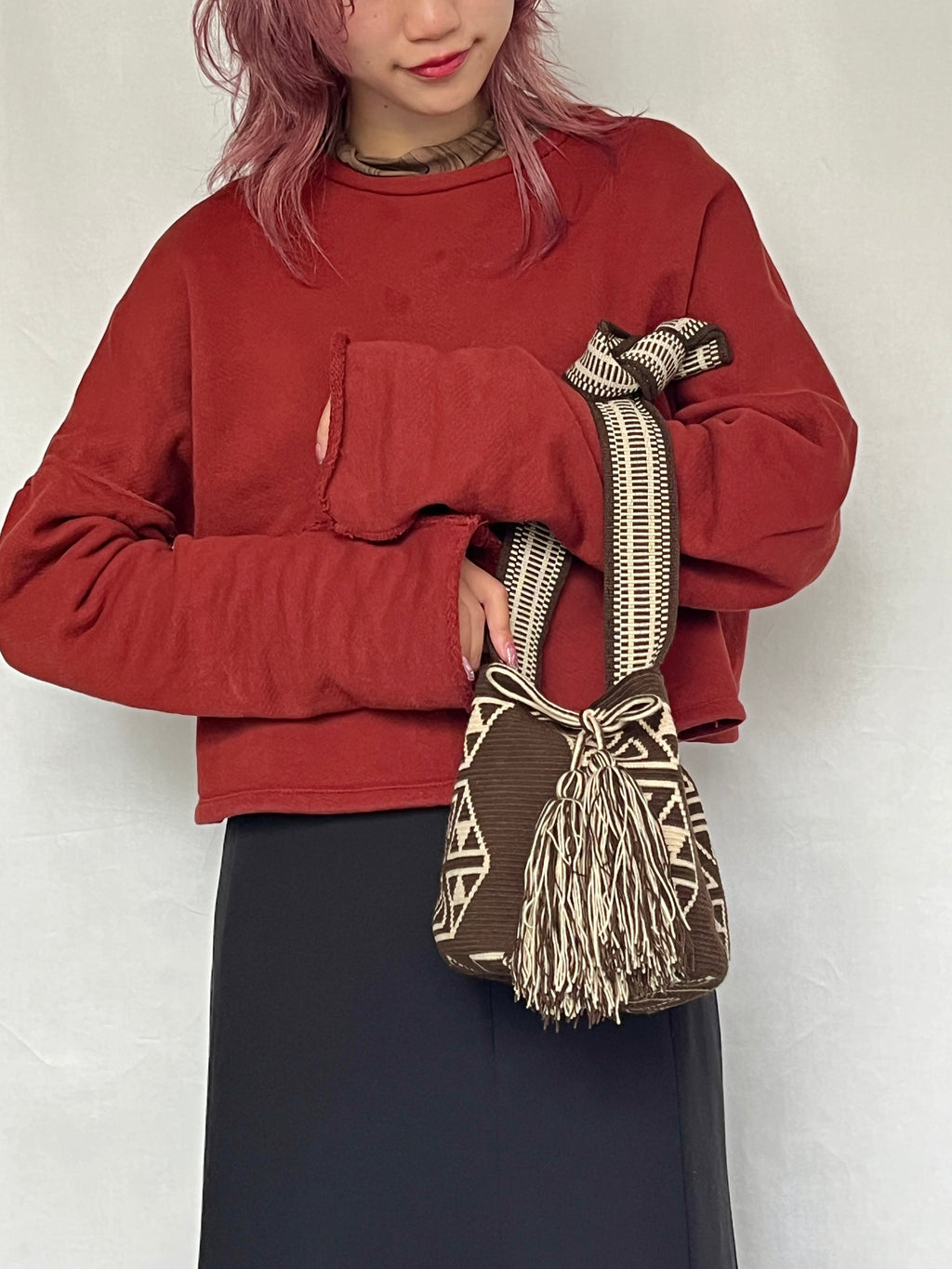 ショルダーバッグとしてだけではなく、持ち手を結んで短くし、ミニバッグのように持っていただくのもおすすめです。