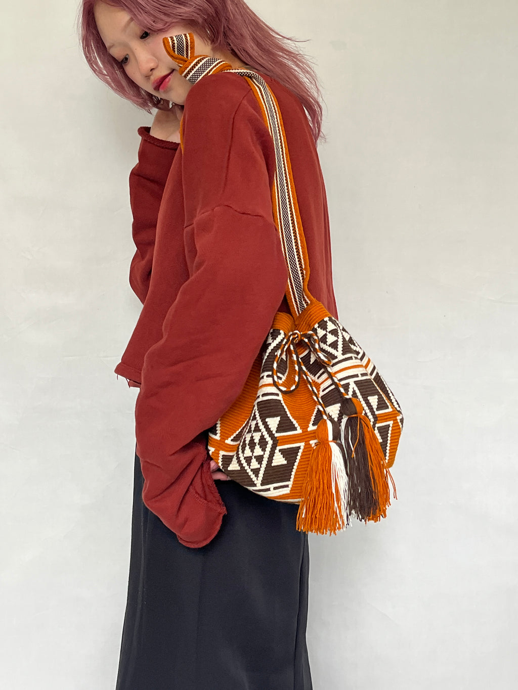 ショルダーバッグとしてだけではなく、持ち手を結んで短くし、ミニバッグのように持っていただくのもおすすめです。