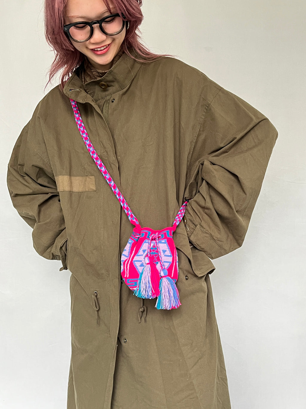 ショルダーバッグとしてだけではなく、持ち手を結んで短くし、ミニバッグのように持っていただくのもおすすめです。