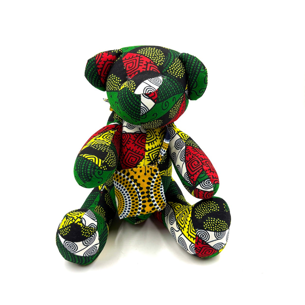 アフリカンプリント・ビッグテディw/ギフトバッグ - グリーンスピリット -