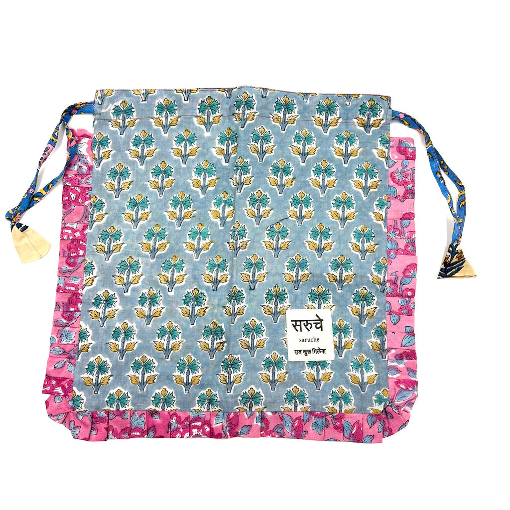 saruche のアイテムに使われるブロックプリントの布は、工房のあるインドのラジャスタン州では昔から愛されてきた伝統あるテキスタイルです。