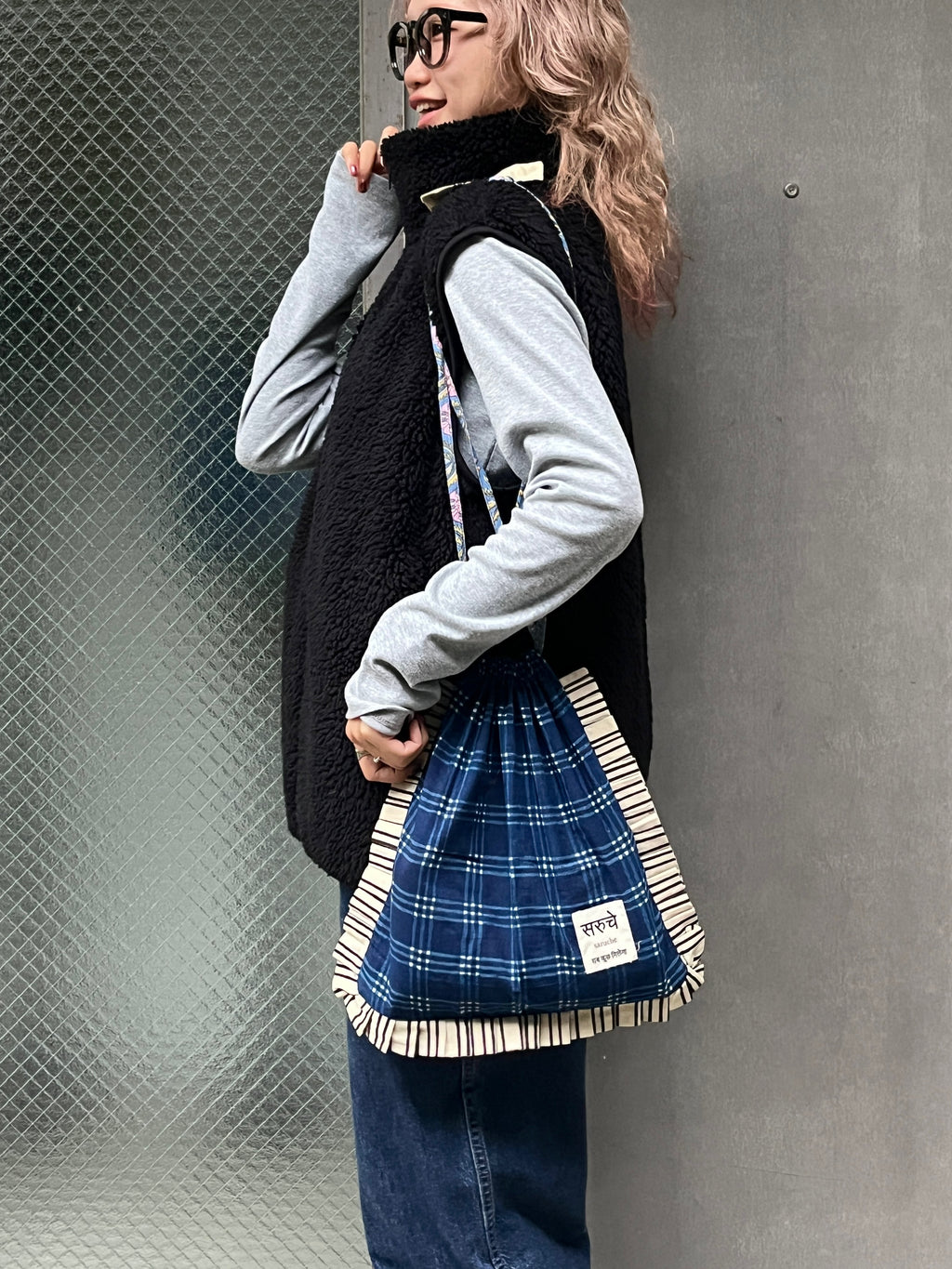 【saruche】ショッパーバッグM - ネイビー・チェック -