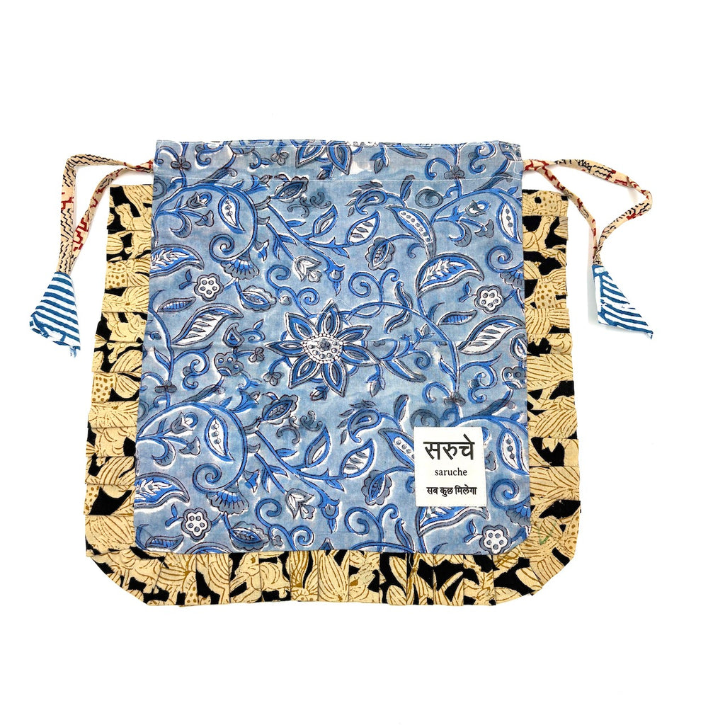 saruche のアイテムに使われるブロックプリントの布は、工房のあるインドのラジャスタン州では昔から愛されてきた伝統あるテキスタイルです。