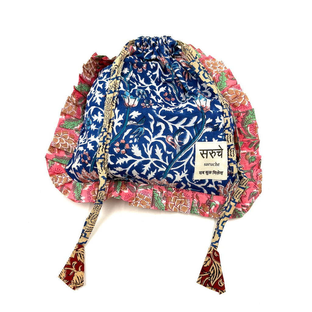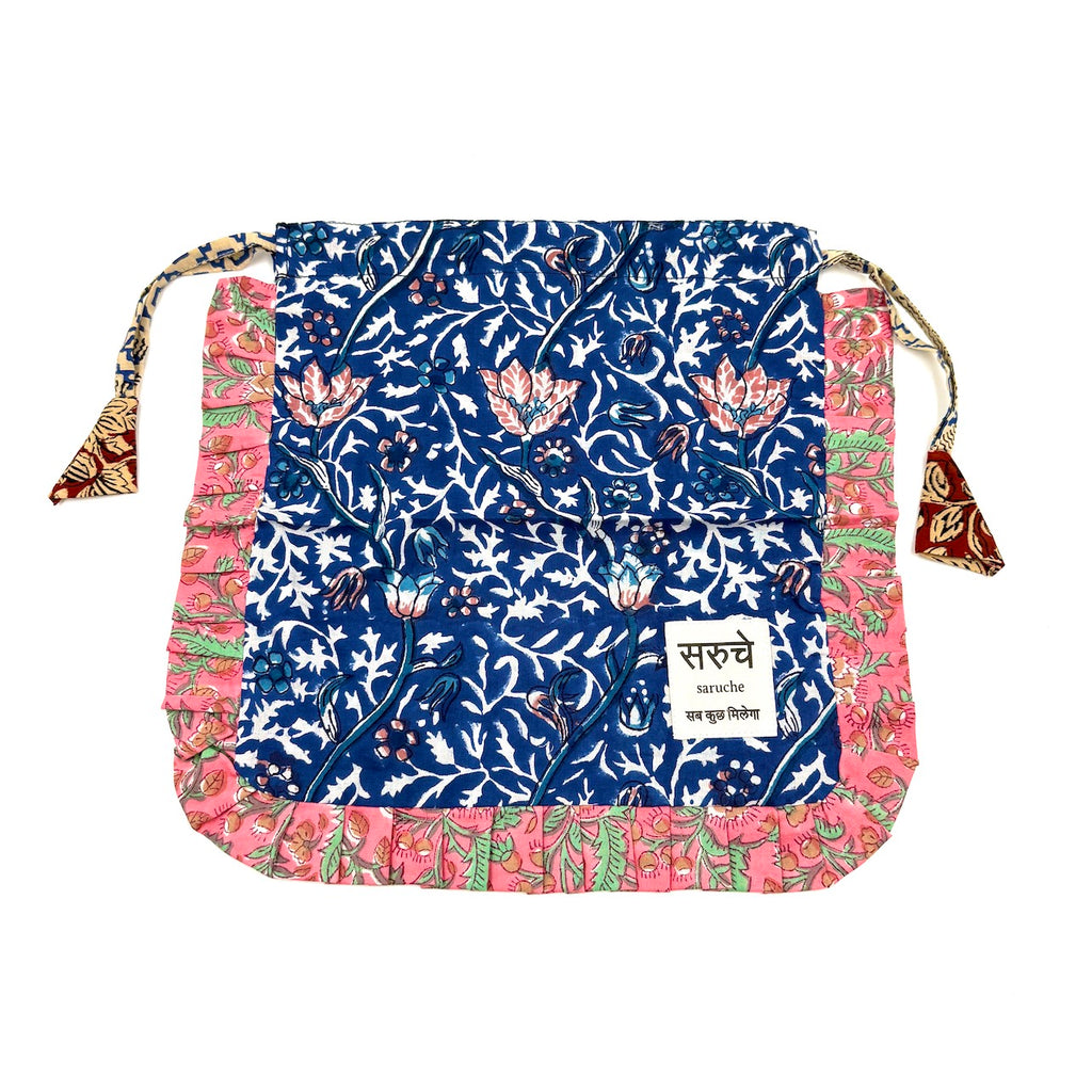 saruche のアイテムに使われるブロックプリントの布は、工房のあるインドのラジャスタン州では昔から愛されてきた伝統あるテキスタイルです。