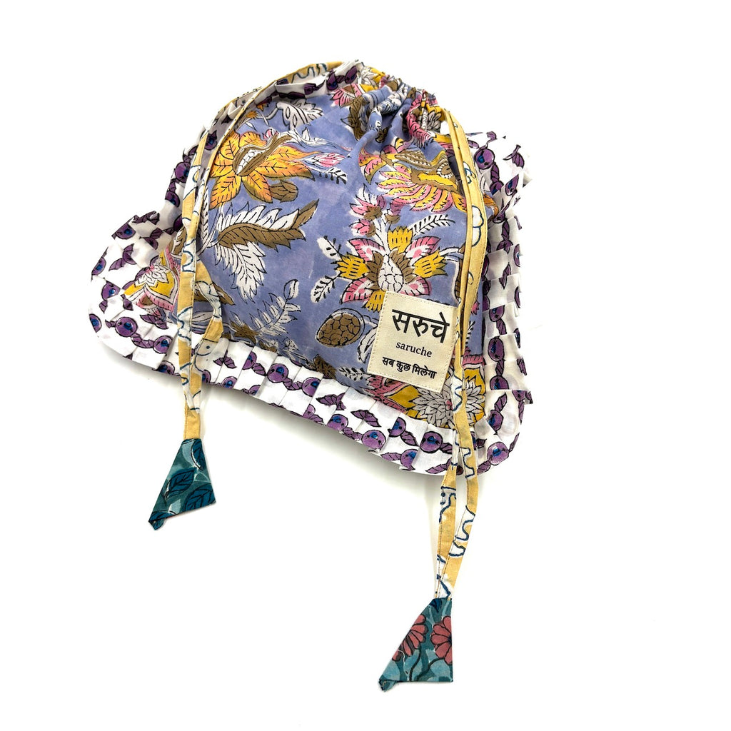 saruche のアイテムに使われるブロックプリントの布は、工房のあるインドのラジャスタン州では昔から愛されてきた伝統あるテキスタイルです。