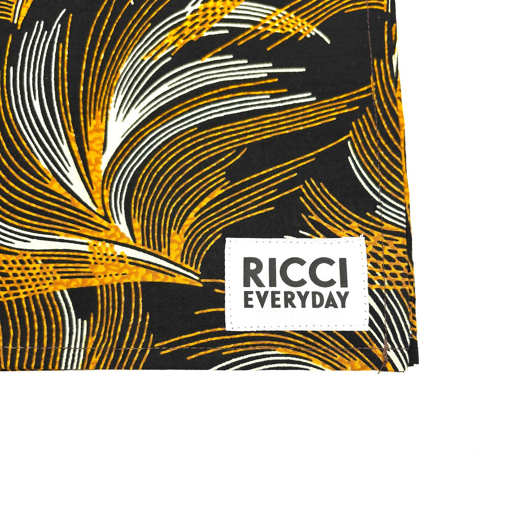 1. RICCI EVERYDAYの製品は、アフリカンワックスプリントの布を使用しています。製品製作時に布に水を通し、色止め加工を施す等、極力、水による色落ちを防ぐようにしております。但し極度な水濡れや摩擦等により色落ちする可能性がありますので、雨の日の使用はお控えいただき、十分にご注意下さい。