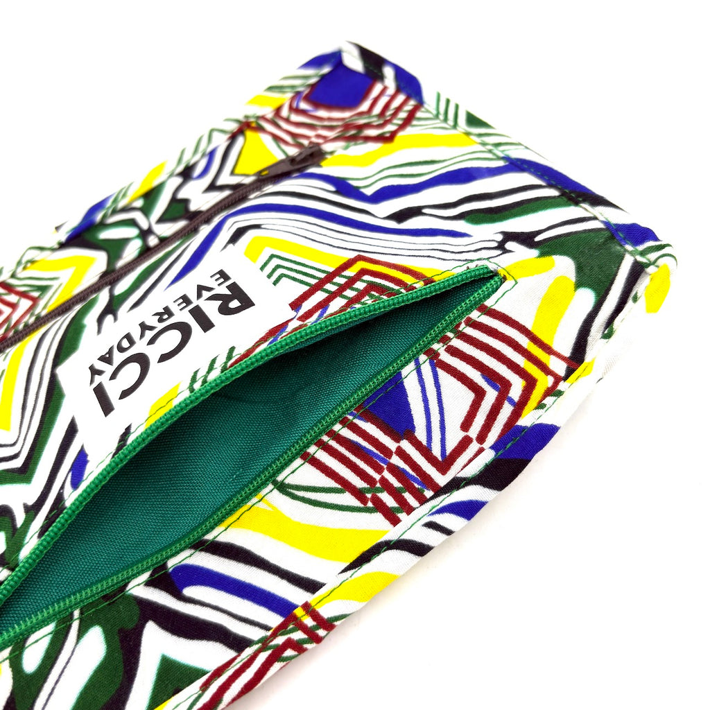 1. RICCI EVERYDAYの製品は、アフリカンワックスプリントの布を使用しています。製品製作時に布に水を通し、色止め加工を施す等、極力、水による色落ちを防ぐようにしております。但し極度な水濡れや摩擦等により色落ちする可能性がありますので、雨の日の使用はお控えいただき、十分にご注意下さい。