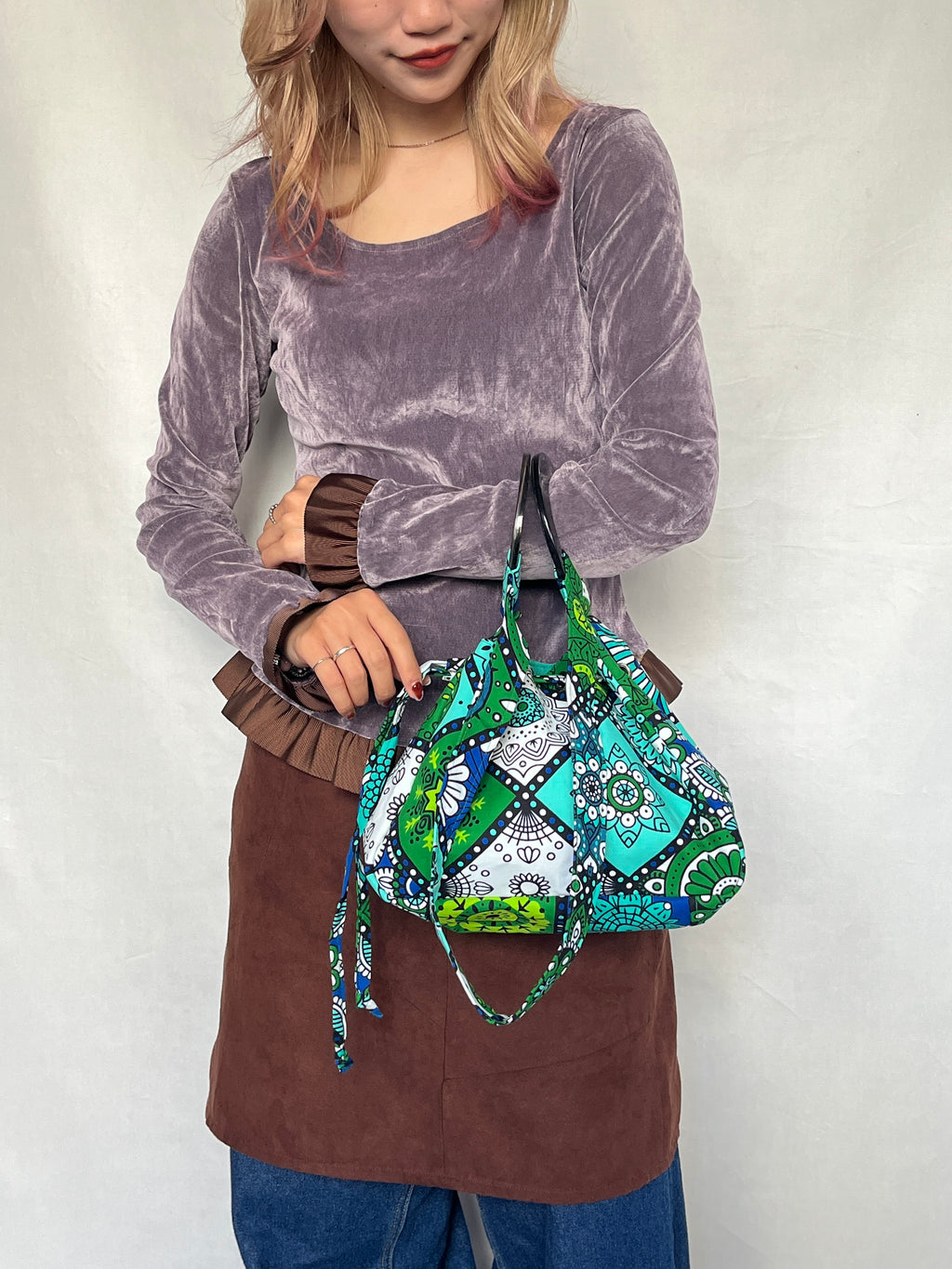 ・コンパクトで、丸みを帯びた巾着型のミニバッグ。可愛らしさがありつつも、上品さも持ちあわせています。