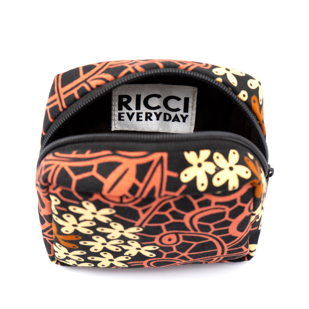 1. RICCI EVERYDAYの製品は、アフリカンワックスプリントの布を使用しています。製品製作時に布に水を通し、色止め加工を施す等、極力、水による色落ちを防ぐようにしております。但し極度な水濡れや摩擦等により色落ちする可能性がありますので、雨の日の使用はお控えいただき、十分にご注意下さい。