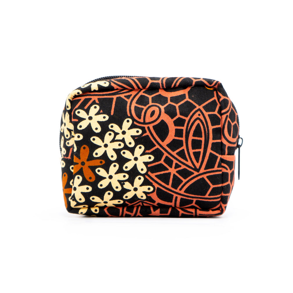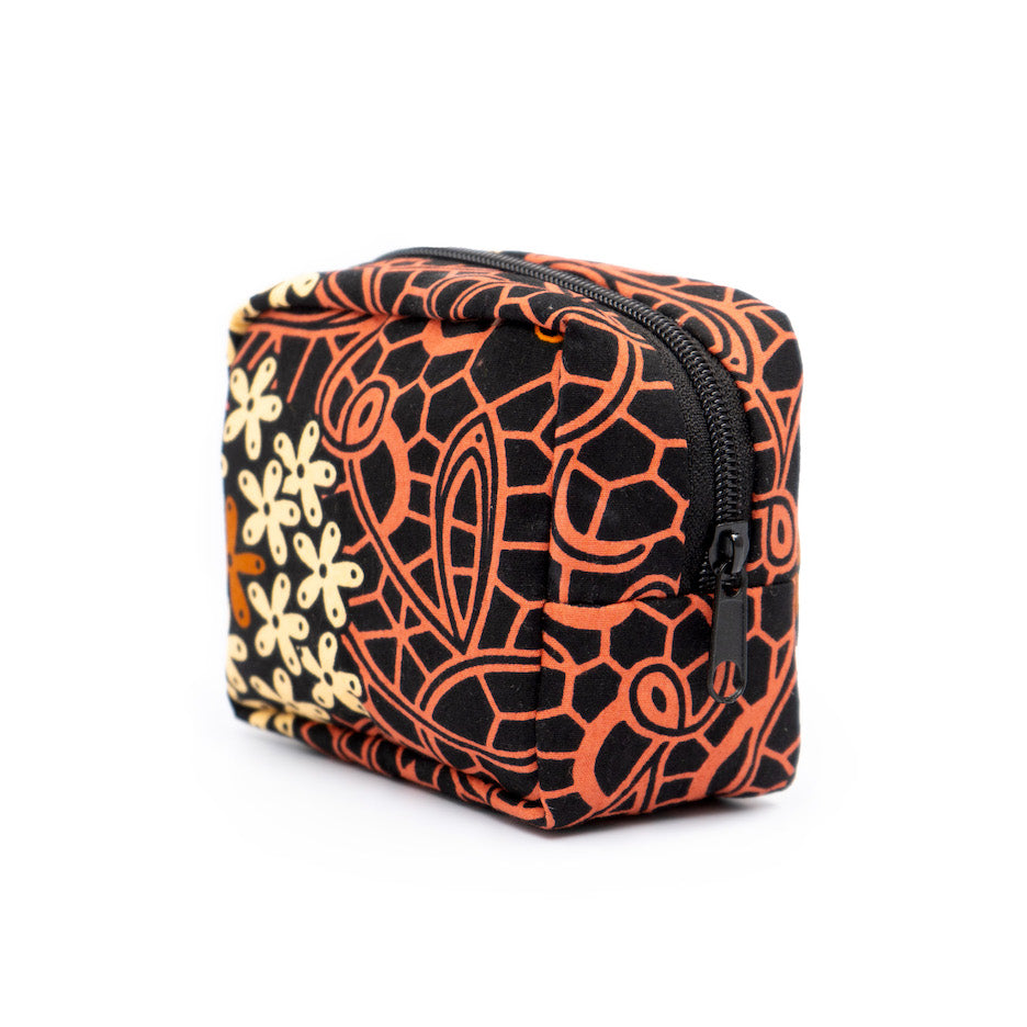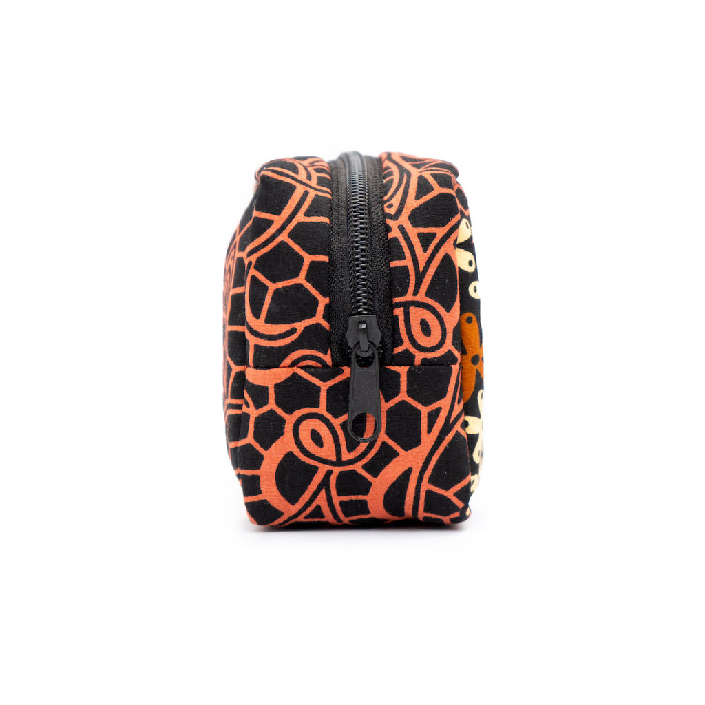 アフリカンプリントを使用した、キューブ型ポーチ。