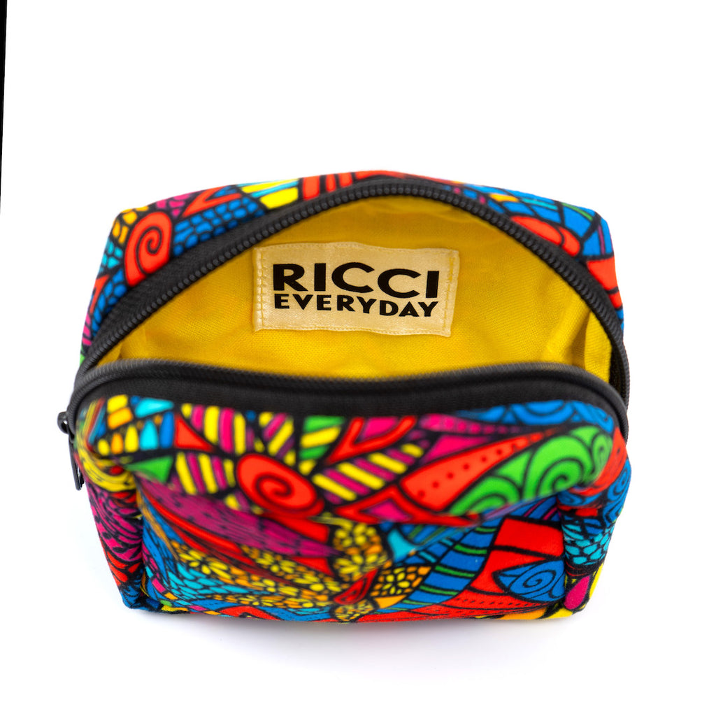 1. RICCI EVERYDAYの製品は、アフリカンワックスプリントの布を使用しています。製品製作時に布に水を通し、色止め加工を施す等、極力、水による色落ちを防ぐようにしております。但し極度な水濡れや摩擦等により色落ちする可能性がありますので、雨の日の使用はお控えいただき、十分にご注意下さい。