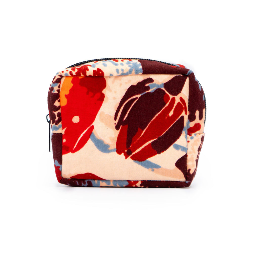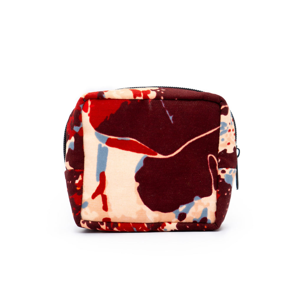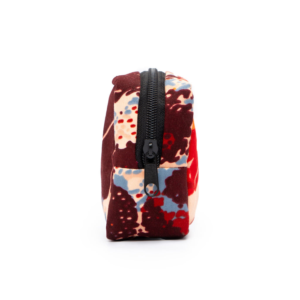 アフリカンプリントを使用した、キューブ型ポーチ。