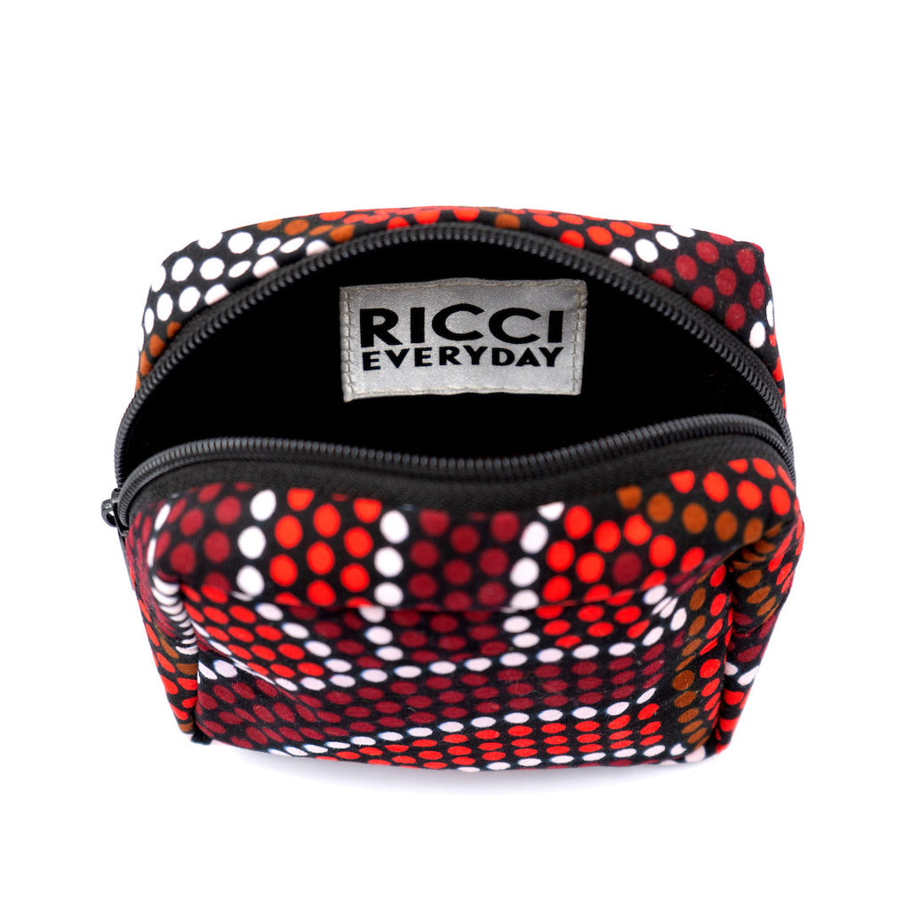 1. RICCI EVERYDAYの製品は、アフリカンワックスプリントの布を使用しています。製品製作時に布に水を通し、色止め加工を施す等、極力、水による色落ちを防ぐようにしております。但し極度な水濡れや摩擦等により色落ちする可能性がありますので、雨の日の使用はお控えいただき、十分にご注意下さい。
