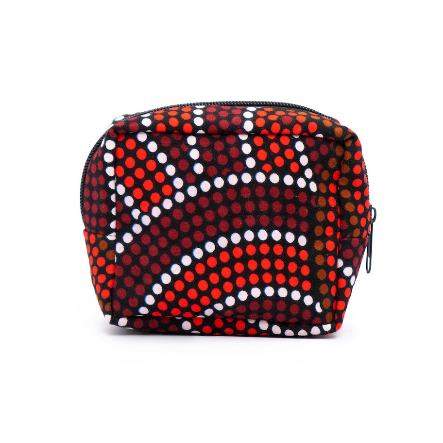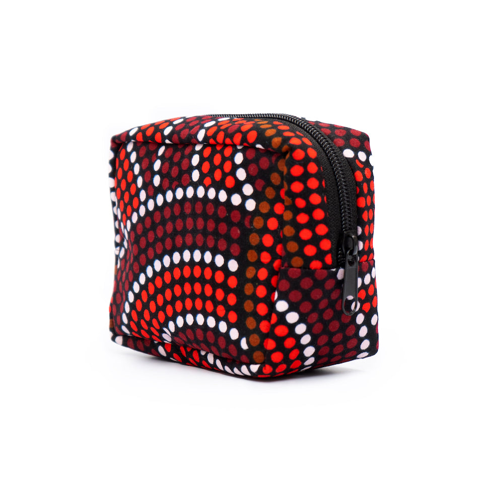 アフリカンプリントを使用した、キューブ型ポーチ。
