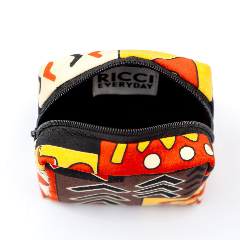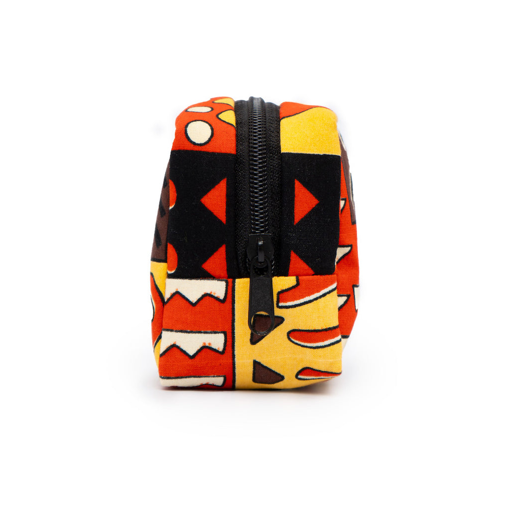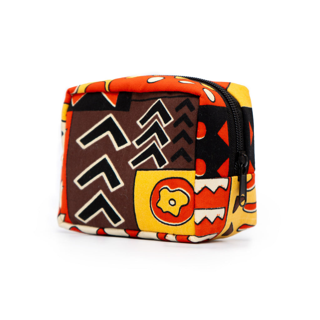 アフリカンプリントを使用した、キューブ型ポーチ。