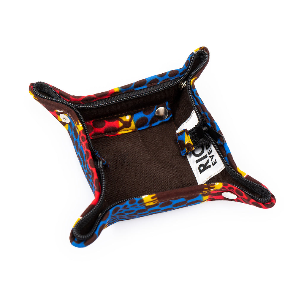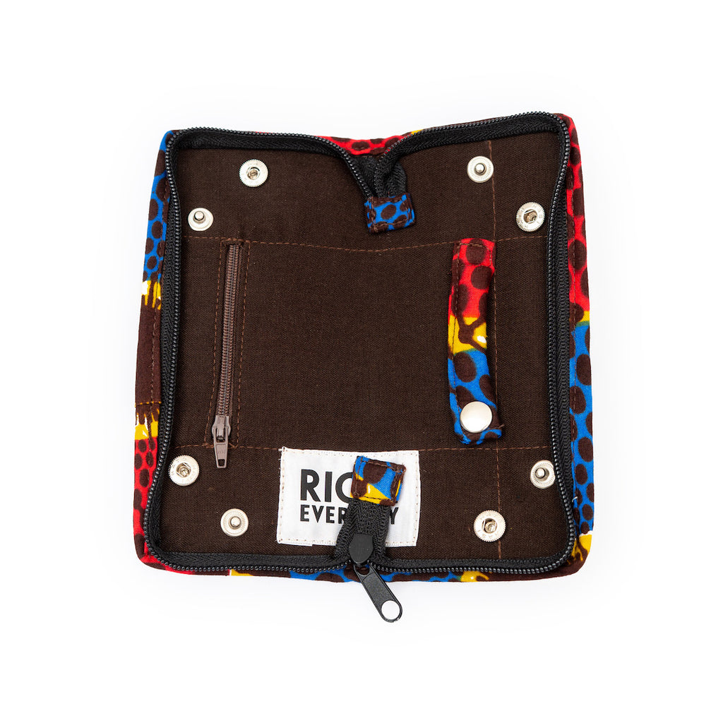 1. RICCI EVERYDAYの製品は、アフリカンワックスプリントの布を使用しています。製品製作時に布に水を通し、色止め加工を施す等、極力、水による色落ちを防ぐようにしております。但し極度な水濡れや摩擦等により色落ちする可能性がありますので、雨の日の使用はお控えいただき、十分にご注意下さい。