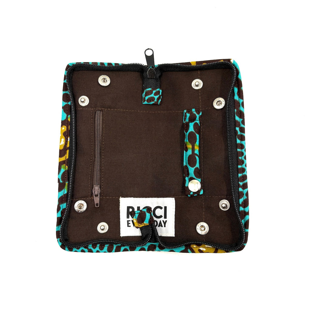 1. RICCI EVERYDAYの製品は、アフリカンワックスプリントの布を使用しています。製品製作時に布に水を通し、色止め加工を施す等、極力、水による色落ちを防ぐようにしております。但し極度な水濡れや摩擦等により色落ちする可能性がありますので、雨の日の使用はお控えいただき、十分にご注意下さい。