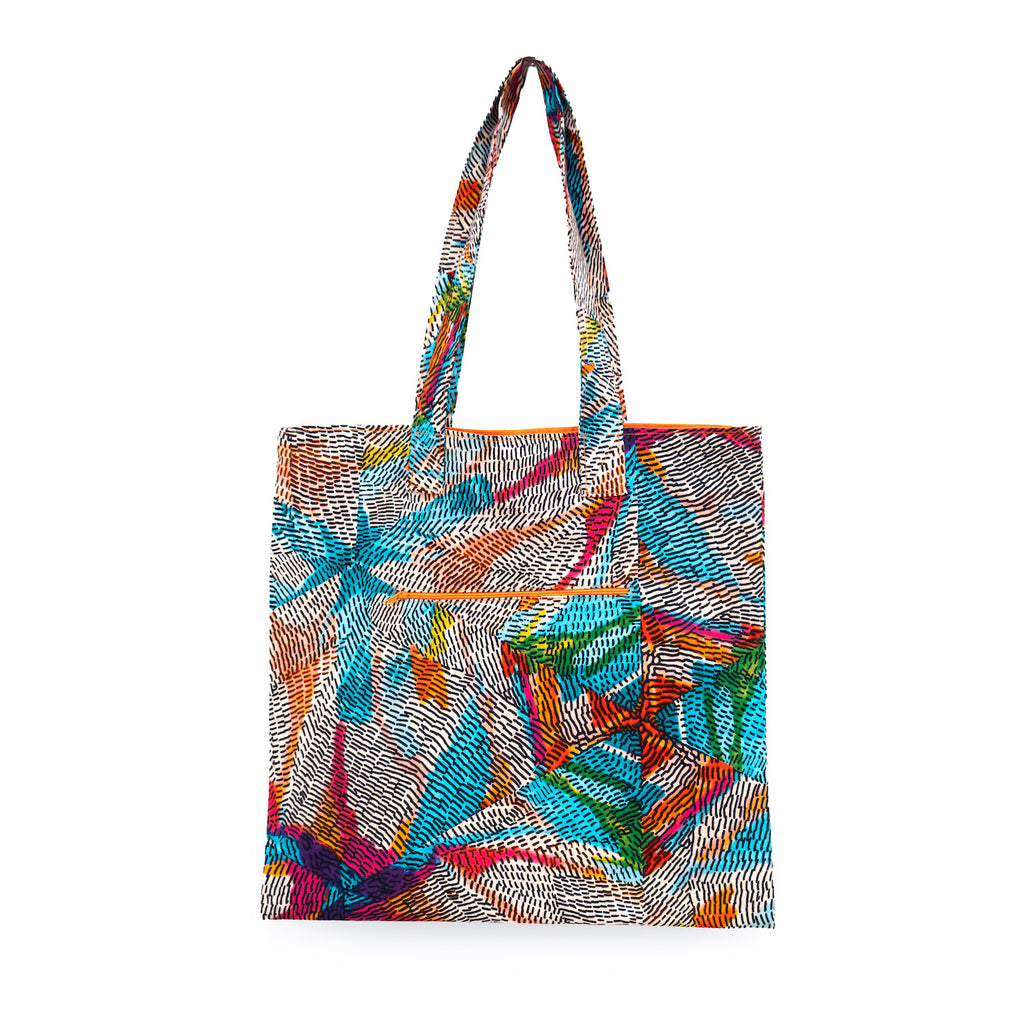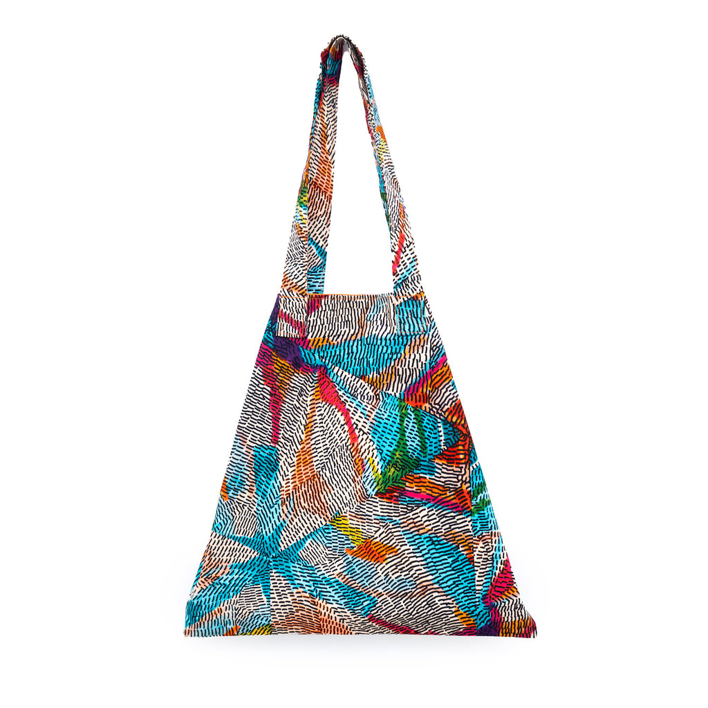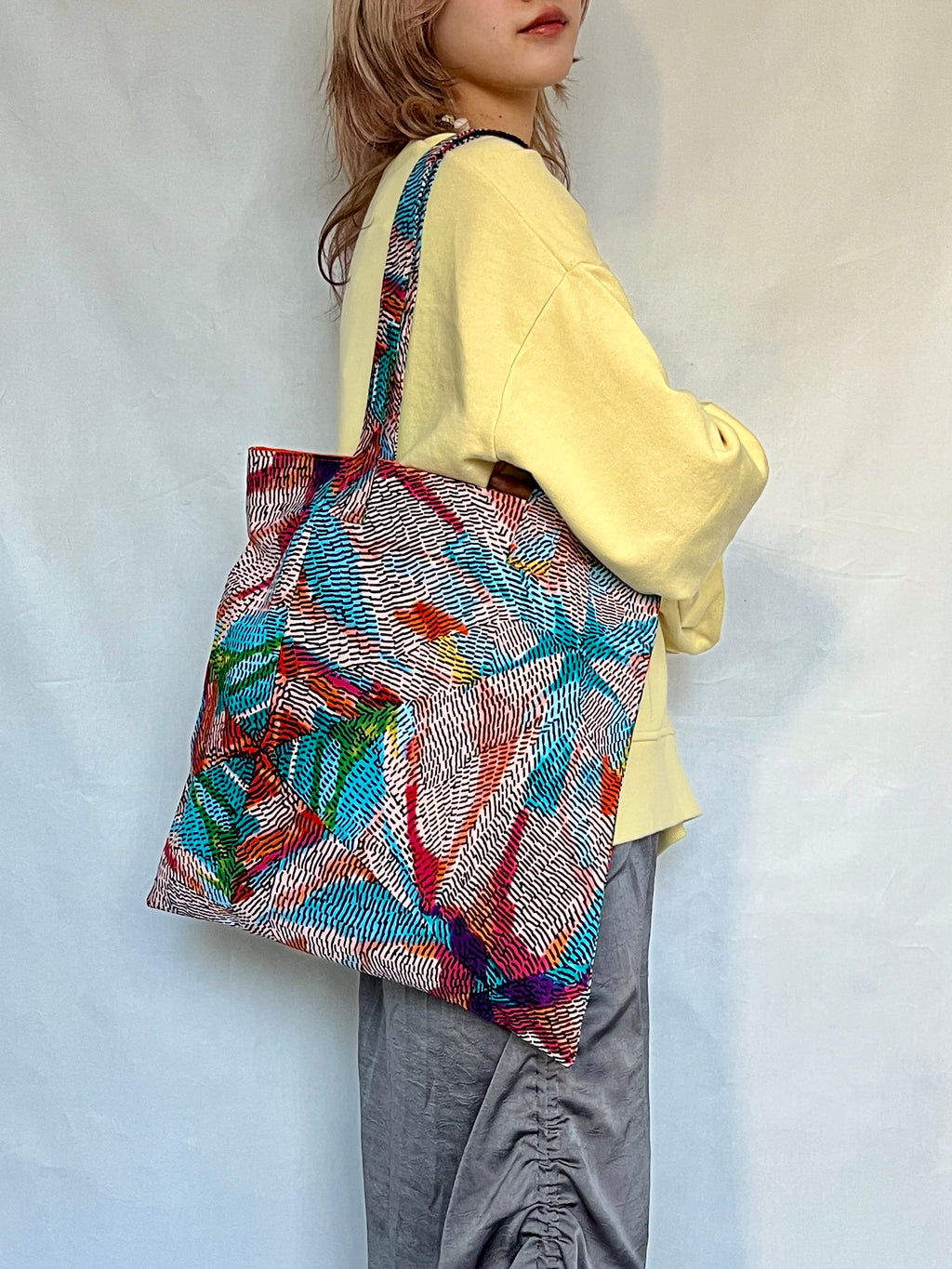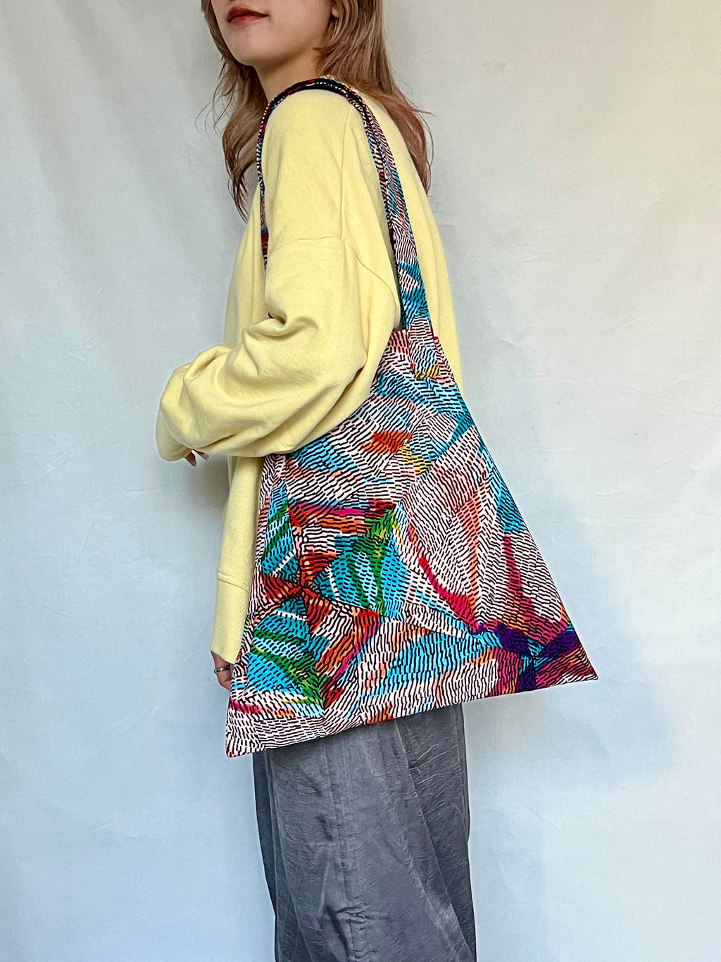 カラフルなアフリカンプリントを使用し、たっぷりと物が入る正方形のエコバッグです。