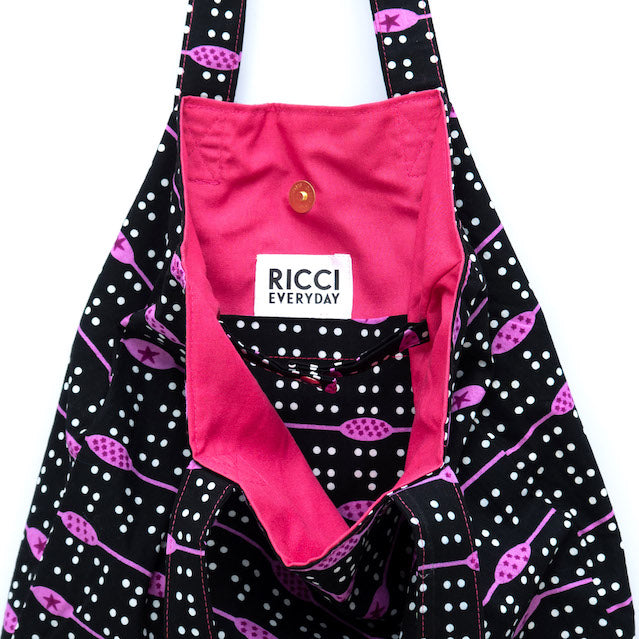 1. RICCI EVERYDAYの製品は、アフリカンワックスプリントの布を使用しています。製品製作時に布に水を通し、色止め加工を施す等、極力、水による色落ちを防ぐようにしております。但し極度な水濡れや摩擦等により色落ちする可能性がありますので、雨の日の使用はお控えいただき、十分にご注意下さい。