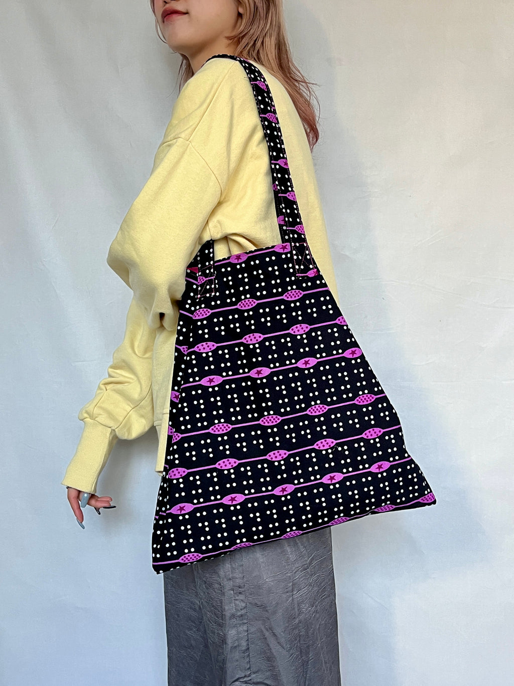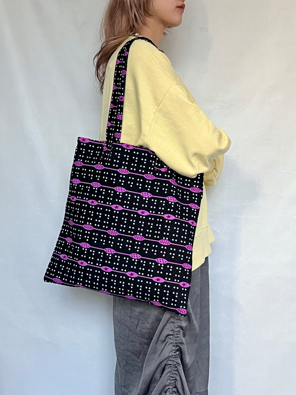 カラフルなアフリカンプリントを使用し、たっぷりと物が入る正方形のエコバッグです。