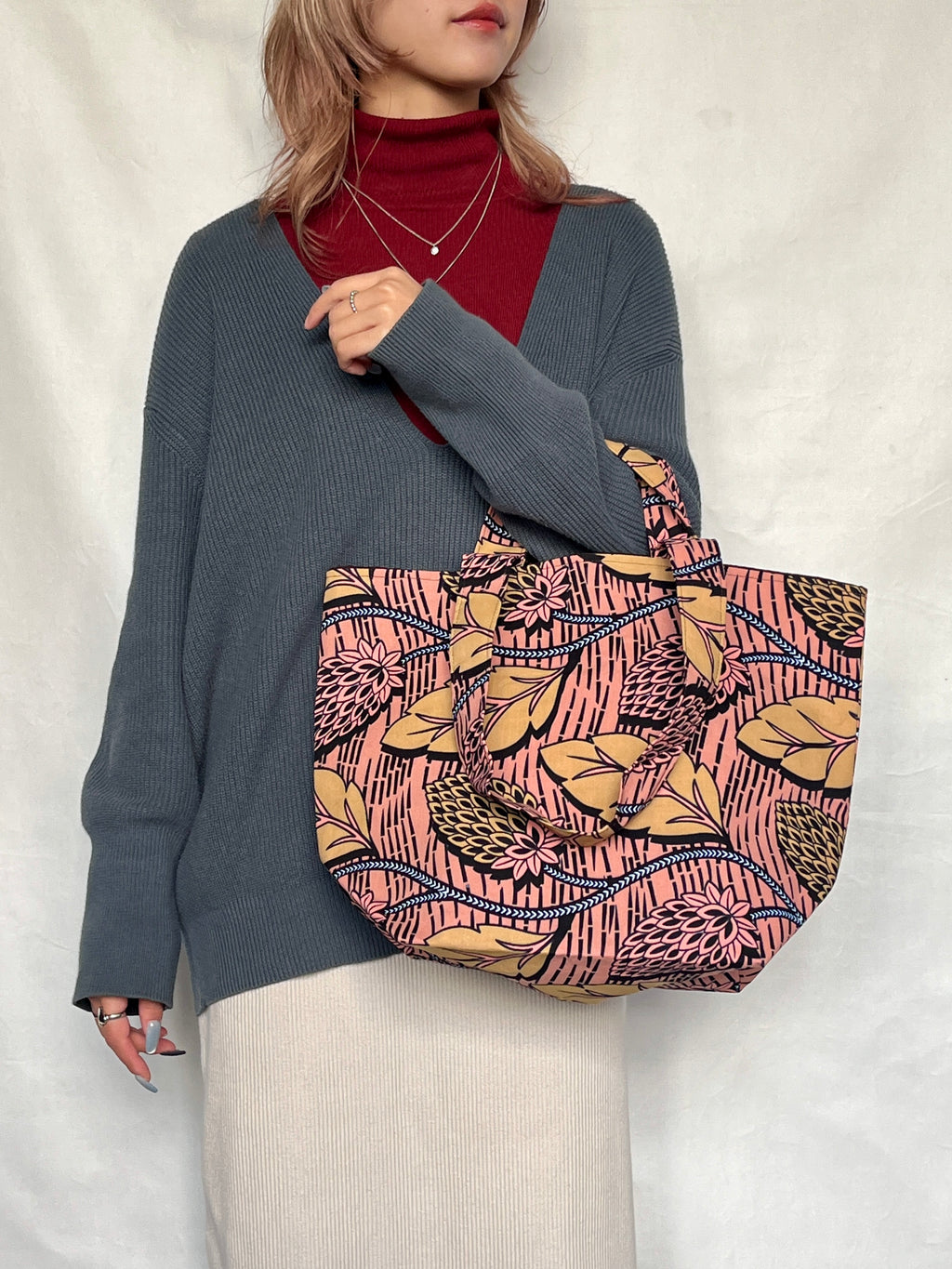 普段使いしやすいサイズ感の、アフリカンプリントのトートバッグです。