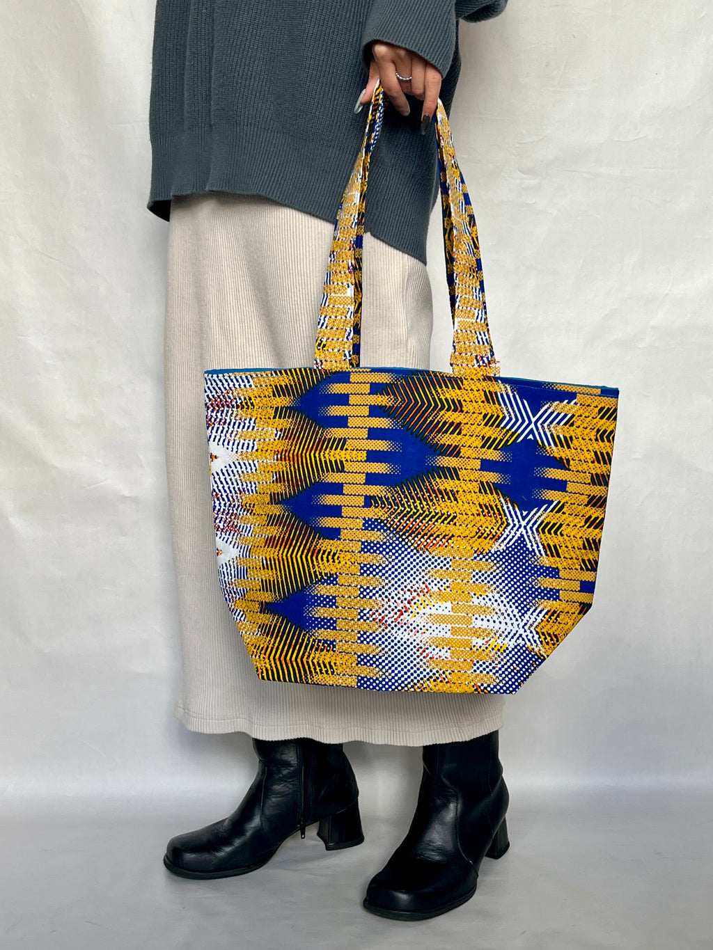 普段使いしやすいサイズ感の、アフリカンプリントのトートバッグです。