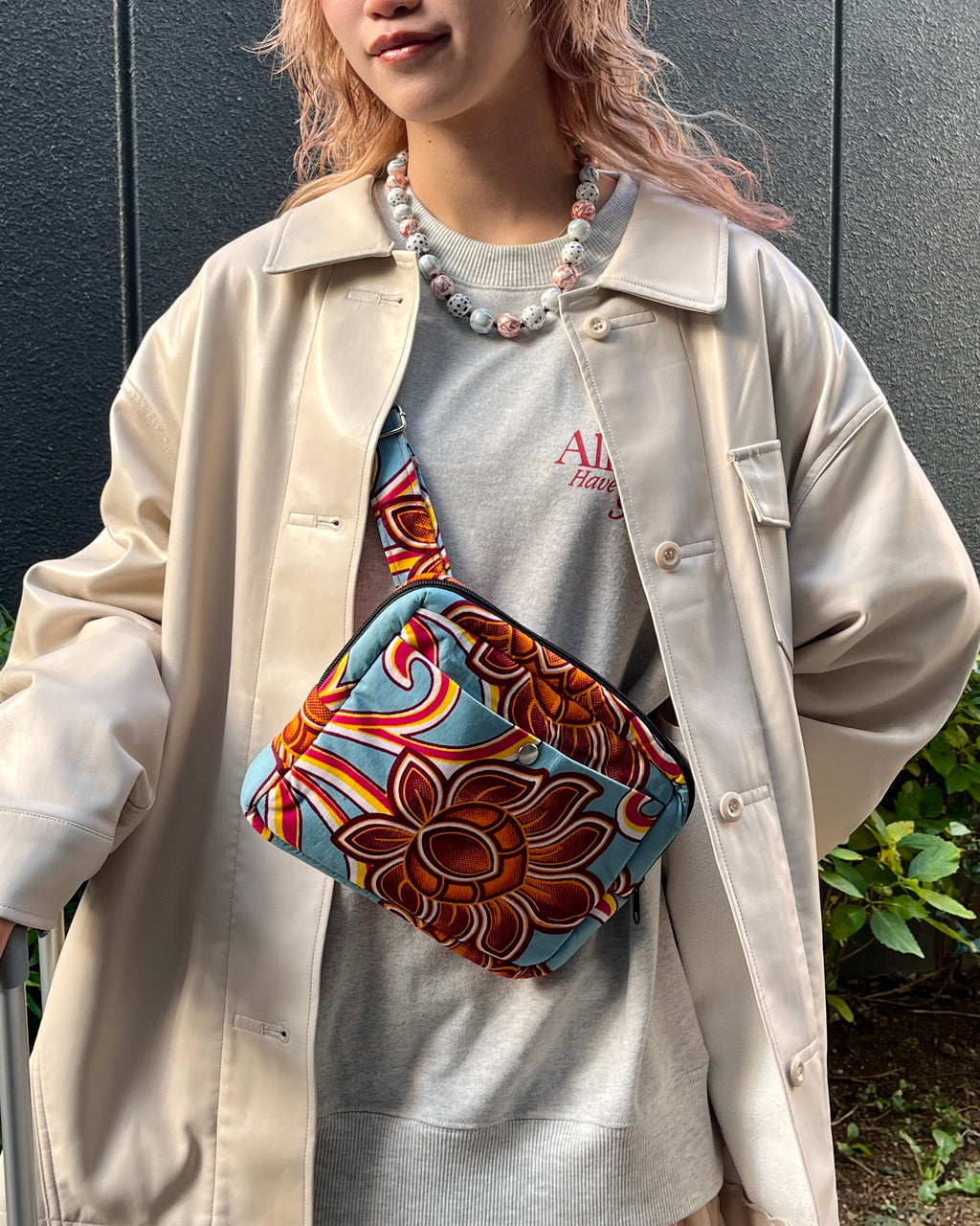 1. RICCI EVERYDAYの製品は、アフリカンワックスプリントの布を使用しています。製品製作時に布に水を通し、色止め加工を施す等、極力、水による色落ちを防ぐようにしております。但し極度な水濡れや摩擦等により色落ちする可能性がありますので、雨の日の使用はお控えいただき、十分にご注意下さい。