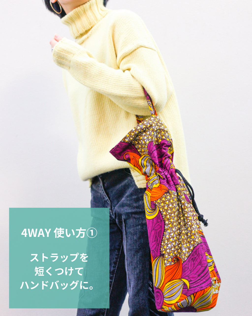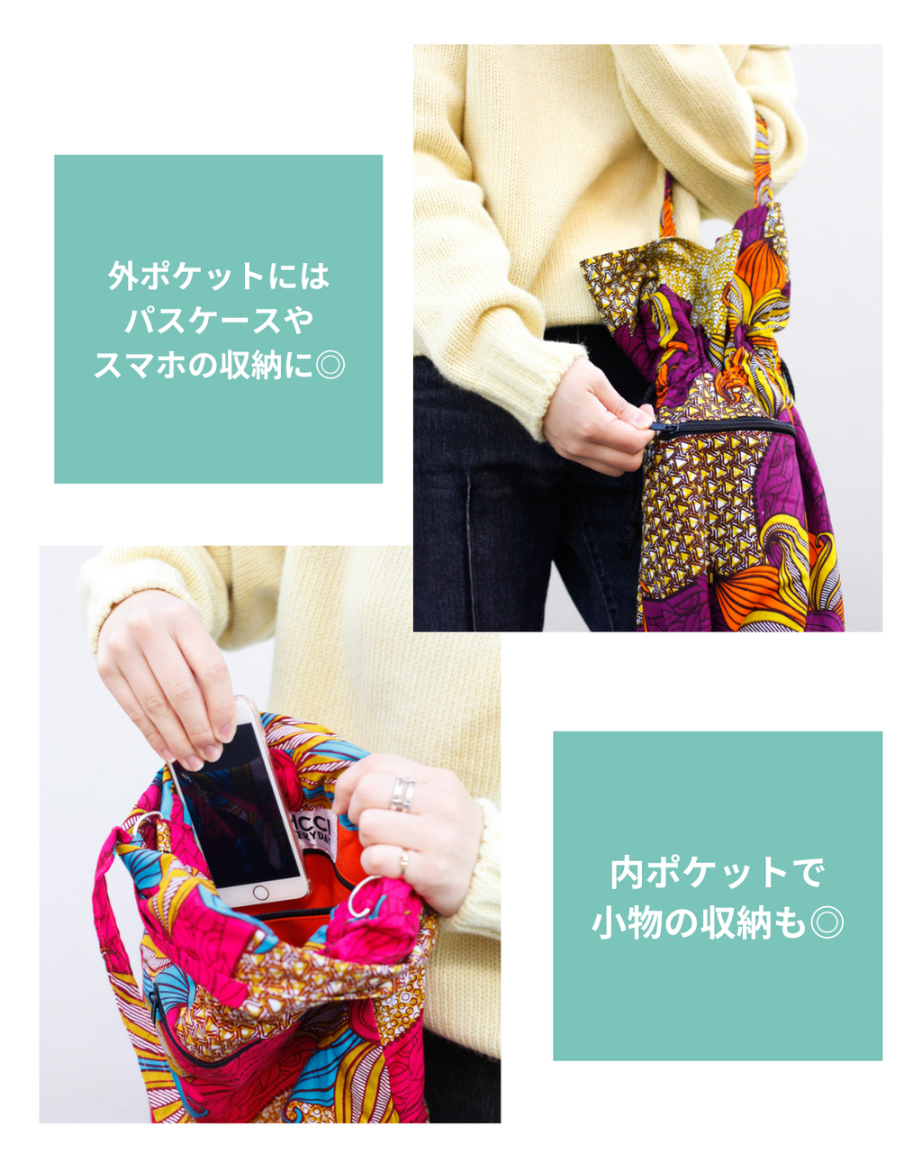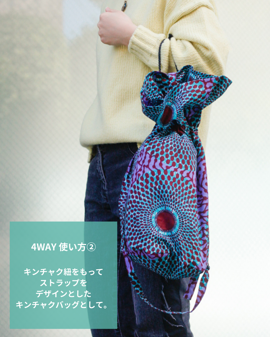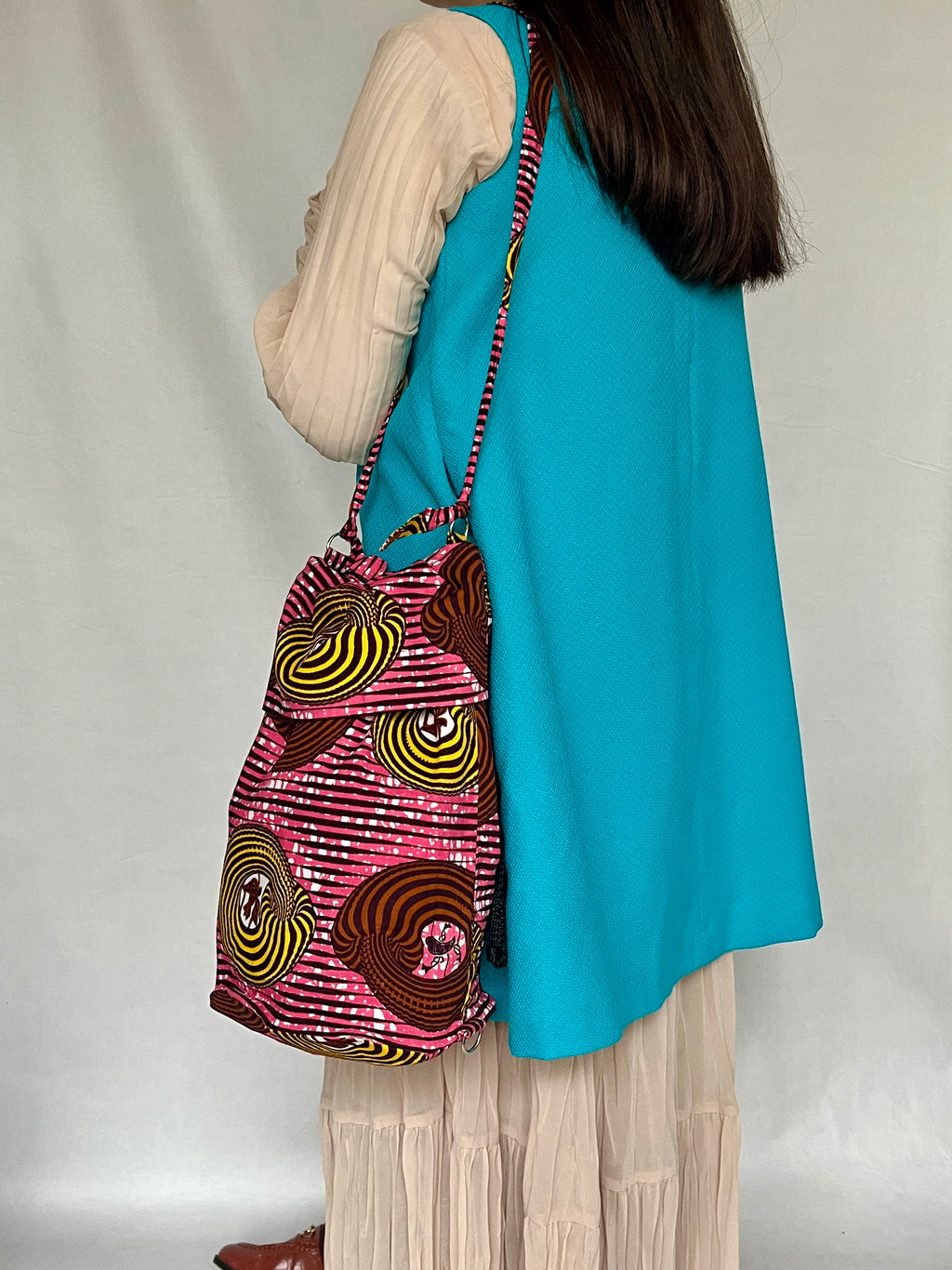 ・色あざあやかな柄が特徴的なアフリカンプリントを使用しています。