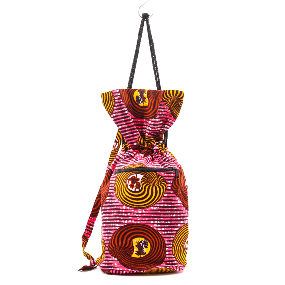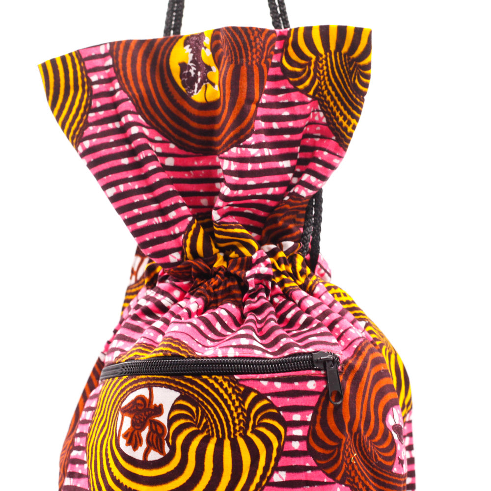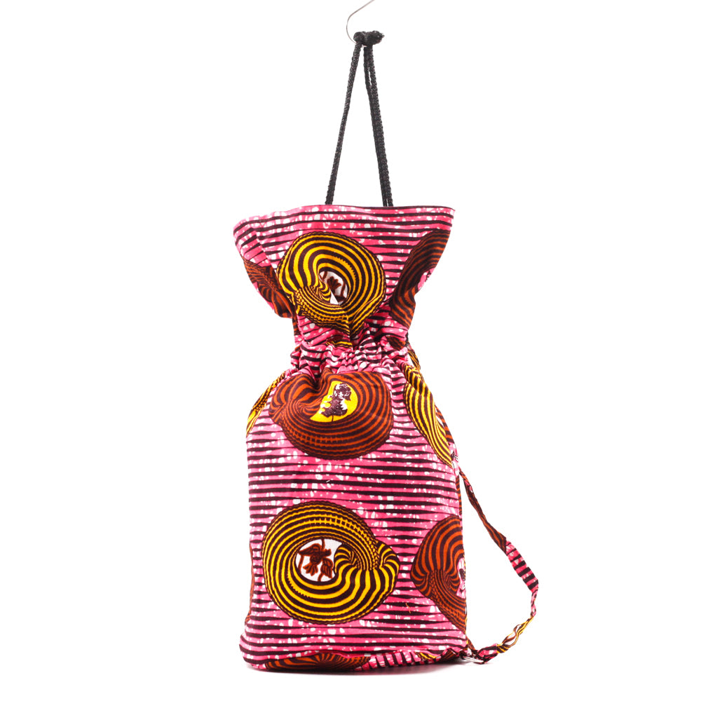 日本の伝統的なあずま袋を、アフリカンプリントを使ってリメイクしたプリントアズマバッグです。