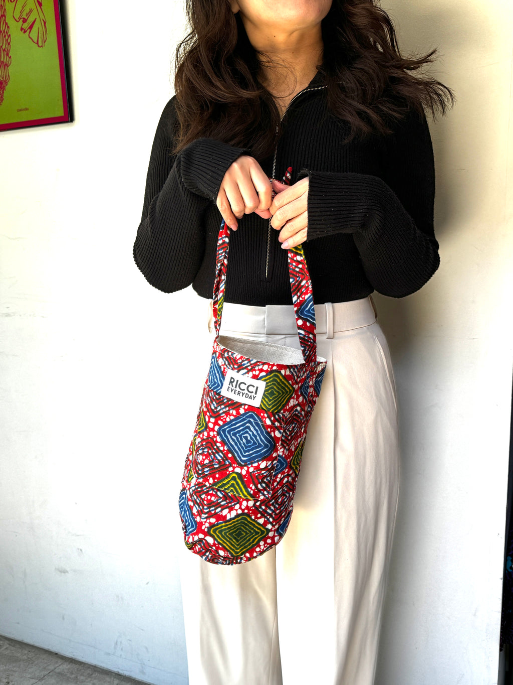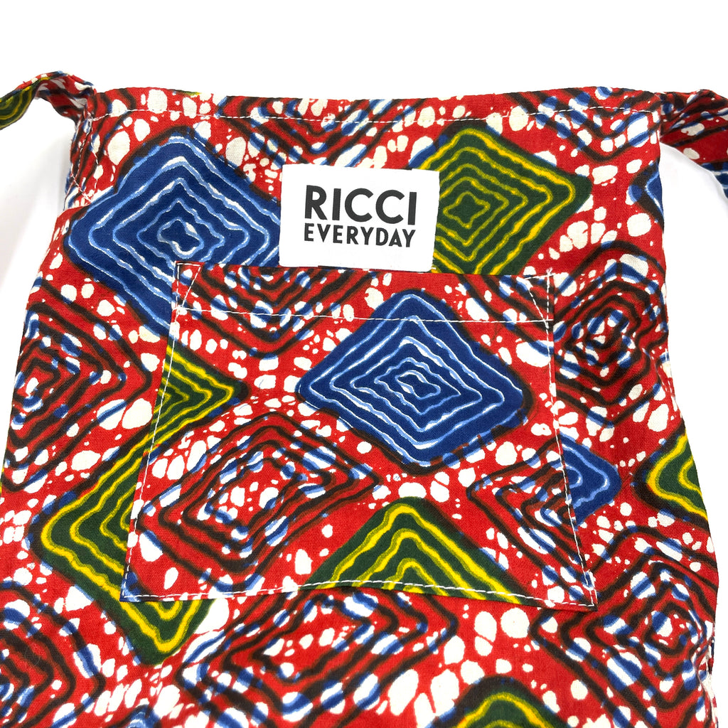 1. RICCI EVERYDAYの製品は、アフリカンワックスプリントの布を使用しています。製品製作時に布に水を通し、色止め加工を施す等、極力、水による色落ちを防ぐようにしております。但し極度な水濡れや摩擦等により色落ちする可能性がありますので、雨の日の使用はお控えいただき、十分にご注意下さい。