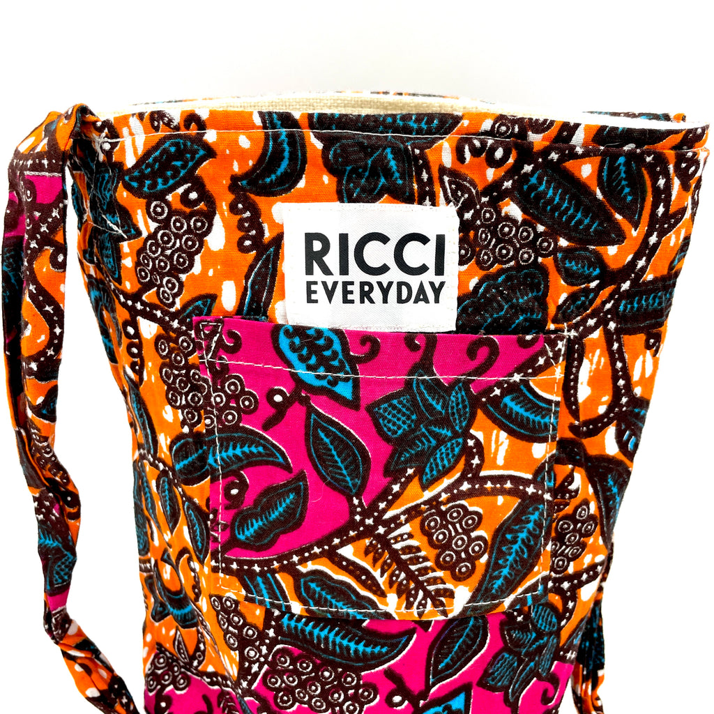 1. RICCI EVERYDAYの製品は、アフリカンワックスプリントの布を使用しています。製品製作時に布に水を通し、色止め加工を施す等、極力、水による色落ちを防ぐようにしております。但し極度な水濡れや摩擦等により色落ちする可能性がありますので、雨の日の使用はお控えいただき、十分にご注意下さい。
