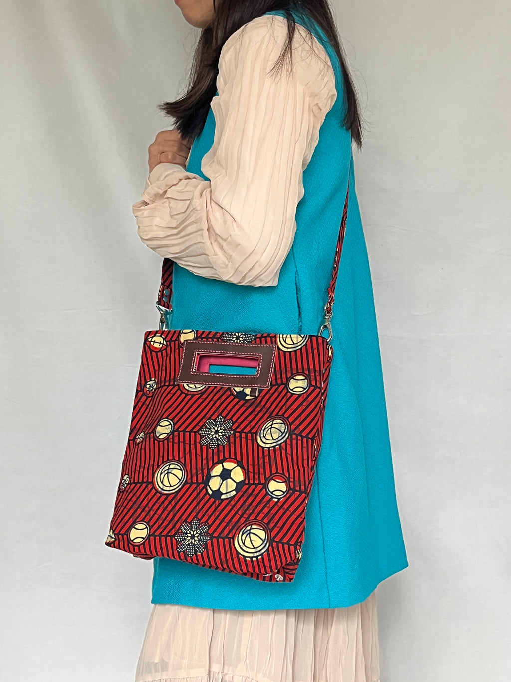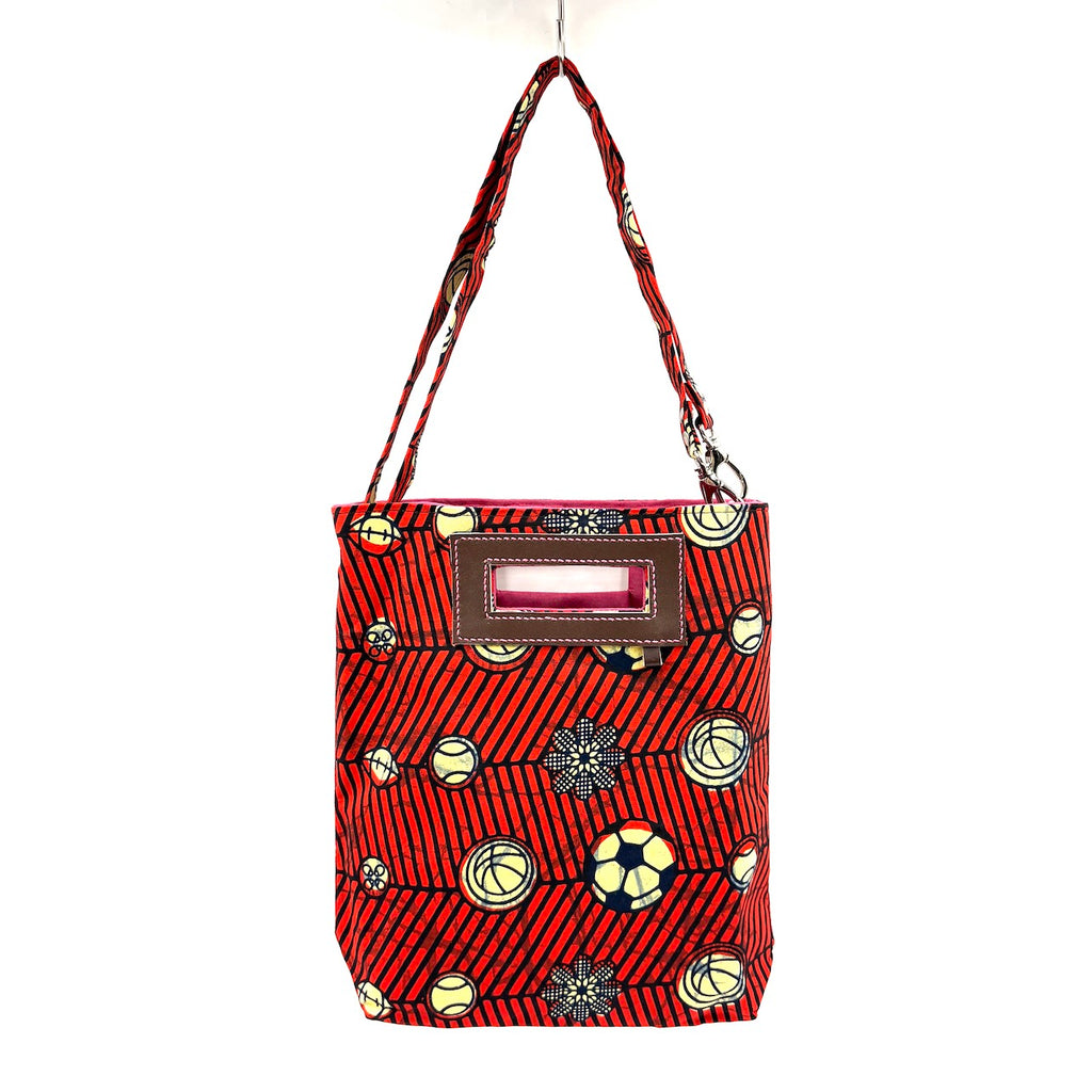カラフルなアフリカンプリントを使用し、トート・ショルダー・クラッチ・ハンドバッグと4通りで使えます。小さめサイズなので、デイリーユーズのショルダーバッグとしてお使いいただくのもおすすめです。