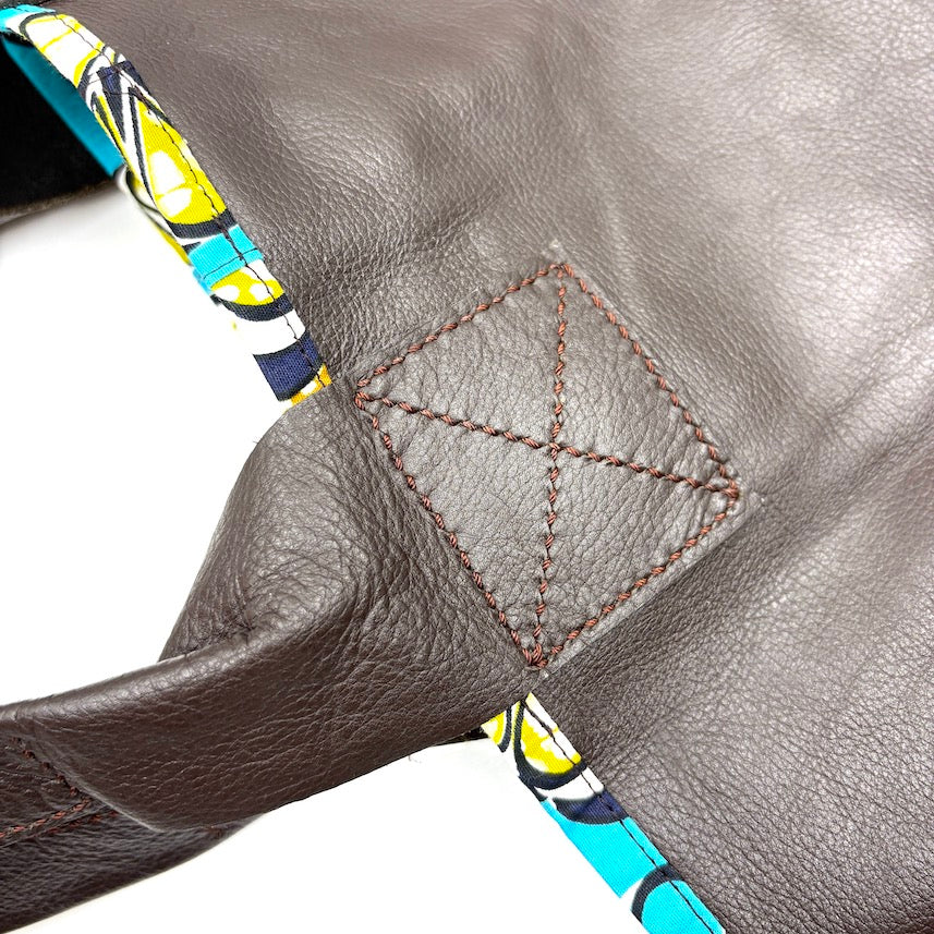 ウガンダでなめされたレザーを使用し、手縫いで仕上げたレザートートバッグ。