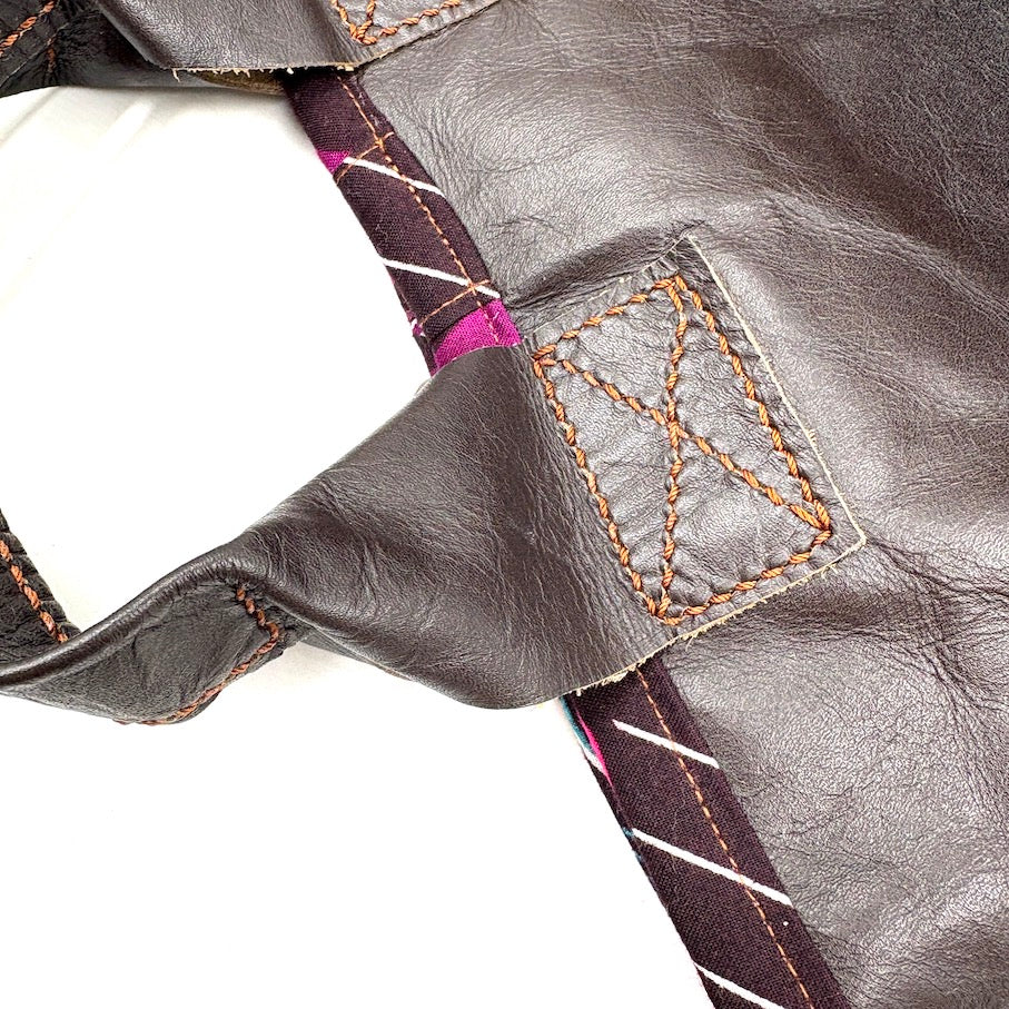 ウガンダでなめされたレザーを使用し、手縫いで仕上げたレザートートバッグ。