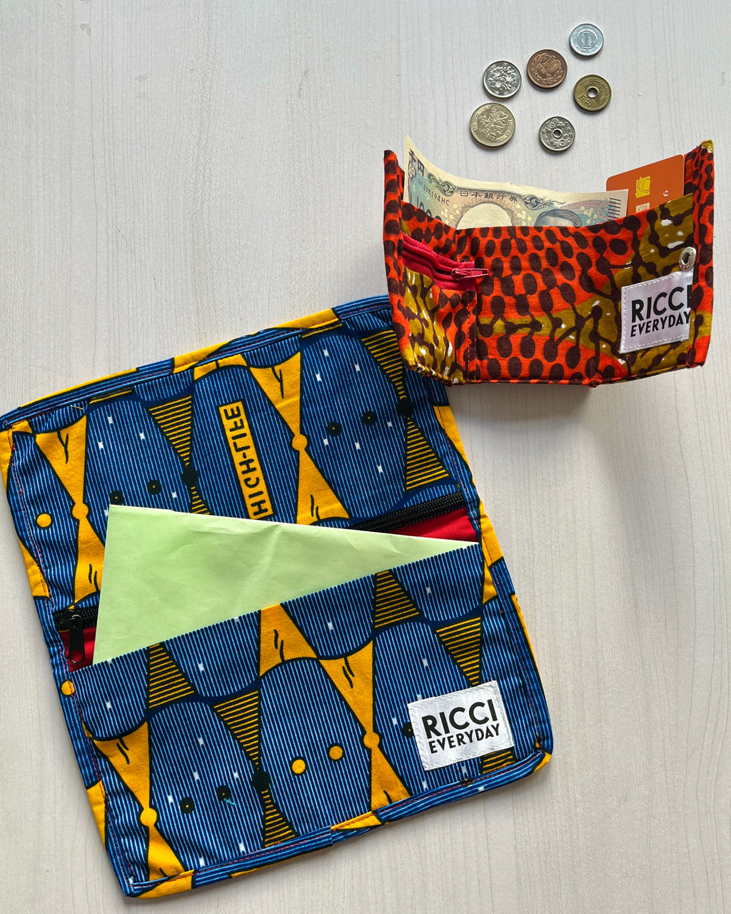 1. RICCI EVERYDAYの製品は、アフリカンワックスプリントの布を使用しています。製品製作時に布に水を通し、色止め加工を施す等、極力、水による色落ちを防ぐようにしております。但し極度な水濡れや摩擦等により色落ちする可能性がありますので、雨の日の使用はお控えいただき、十分にご注意下さい。